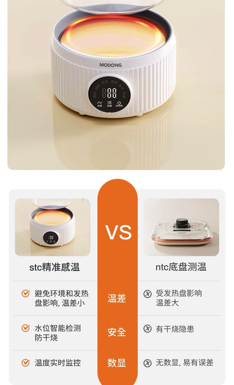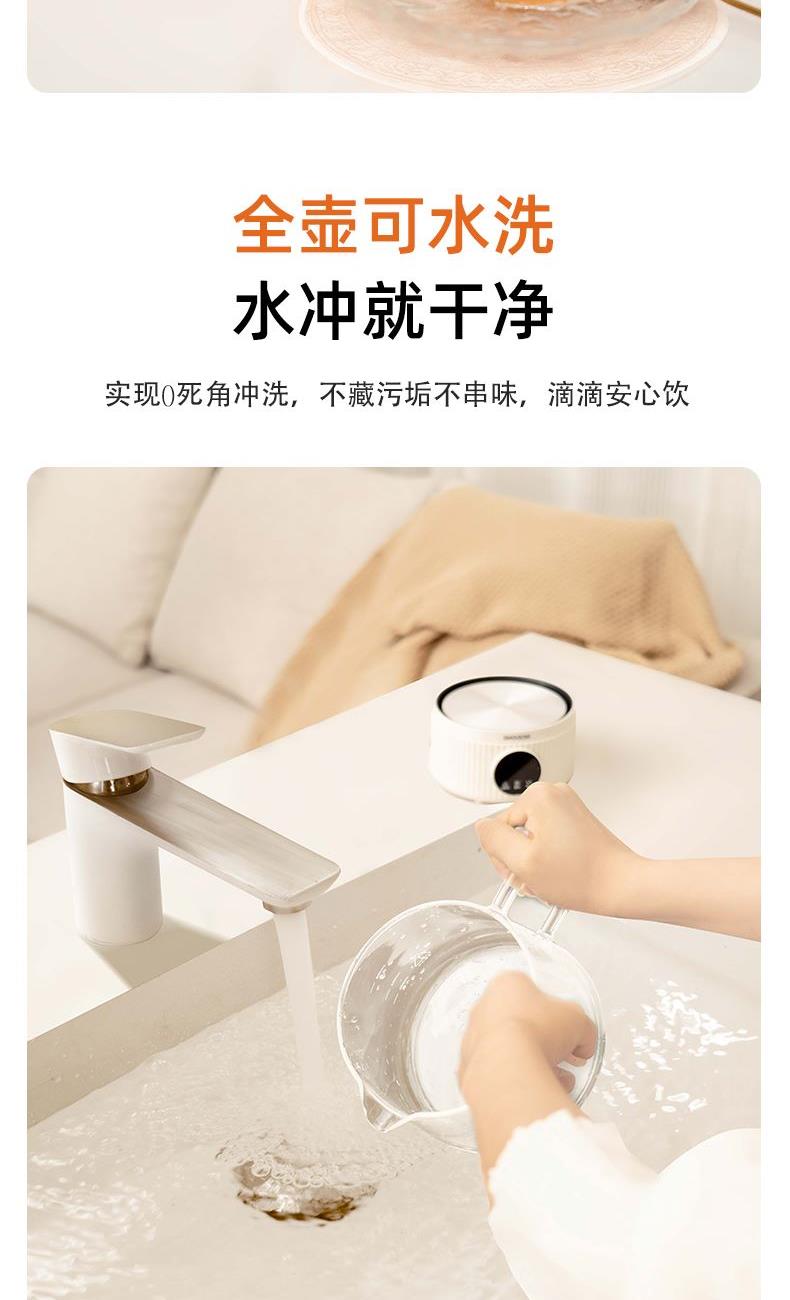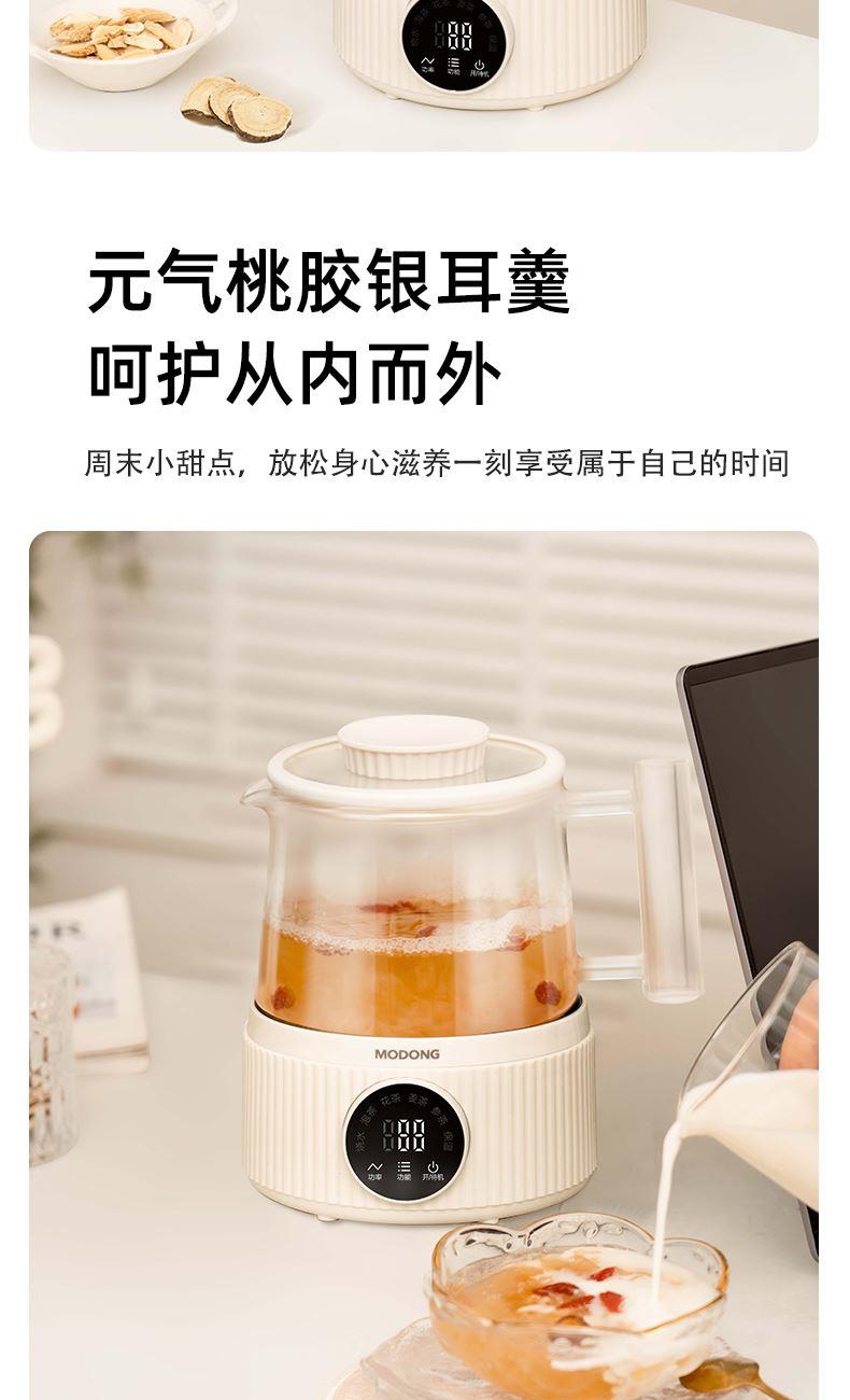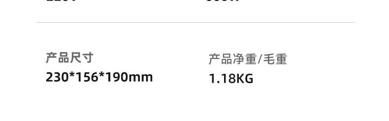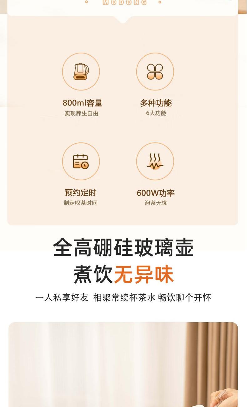 产品净重:1.18KG 产品毛重:1.54KG 额定功率:600W 额定电压:220V~ 容量:0.8L 内含:主机x1、800ML玻璃花茶壶杯x1、说明书x1 1.全身玻璃,防烫把手,全身水洗不藏垢, 2.大容量0.8L,100-600W多功率可选 3.微电脑灵敏触选,轻松烹煮花样茶饮 4.持久保温4H,温度可调,有提壶记忆功能 5.三重安全防护,防干烧。热熔点保护、温控器保护
