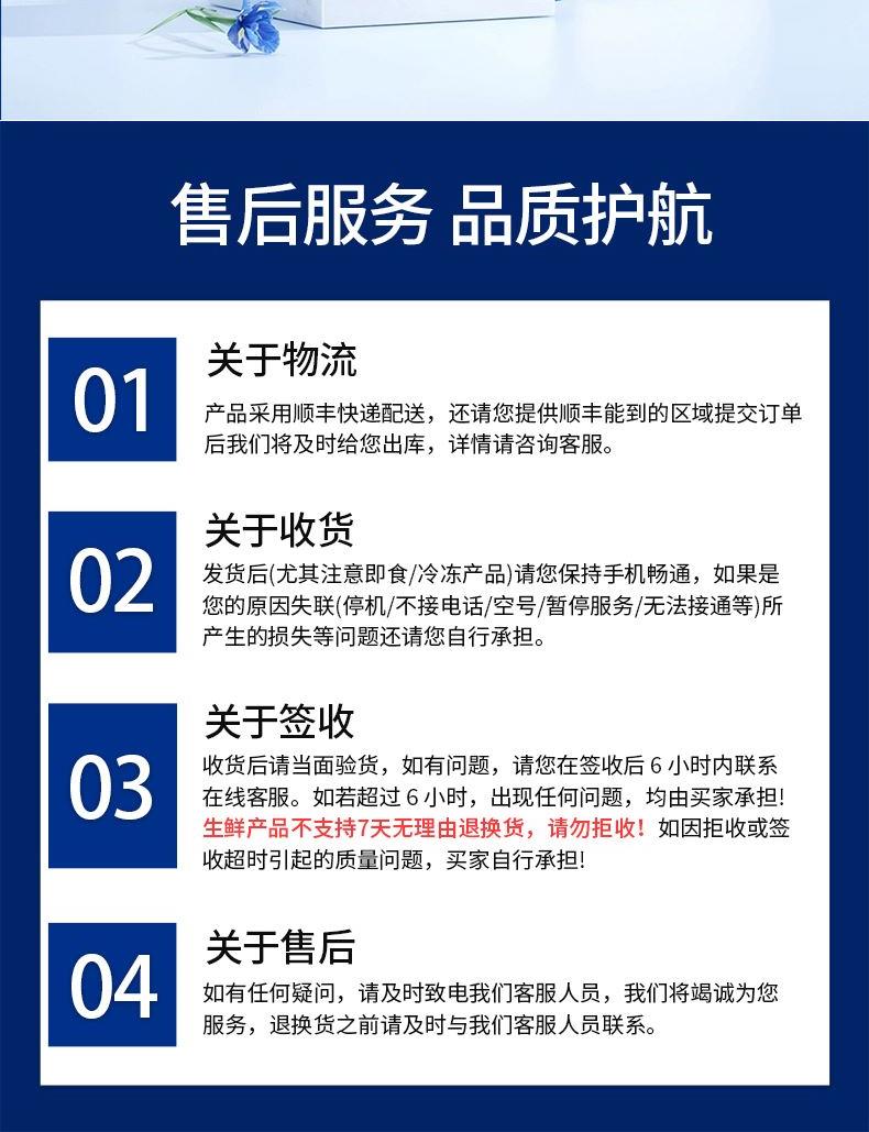 2.品质保证,食用更放心。 顺丰全程冷链配送,安心更快捷,礼盒精美,源自深海设计灵感。