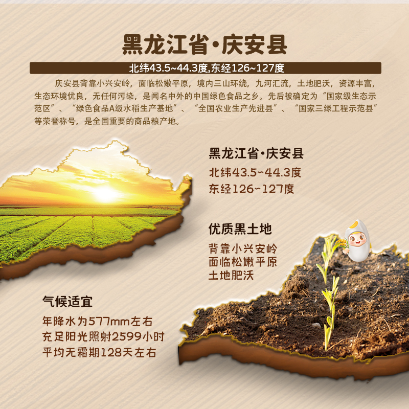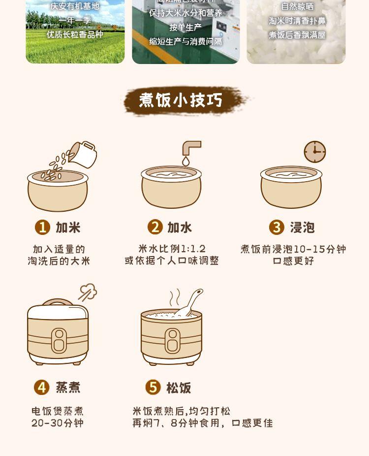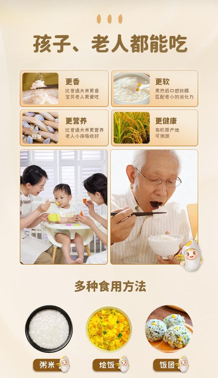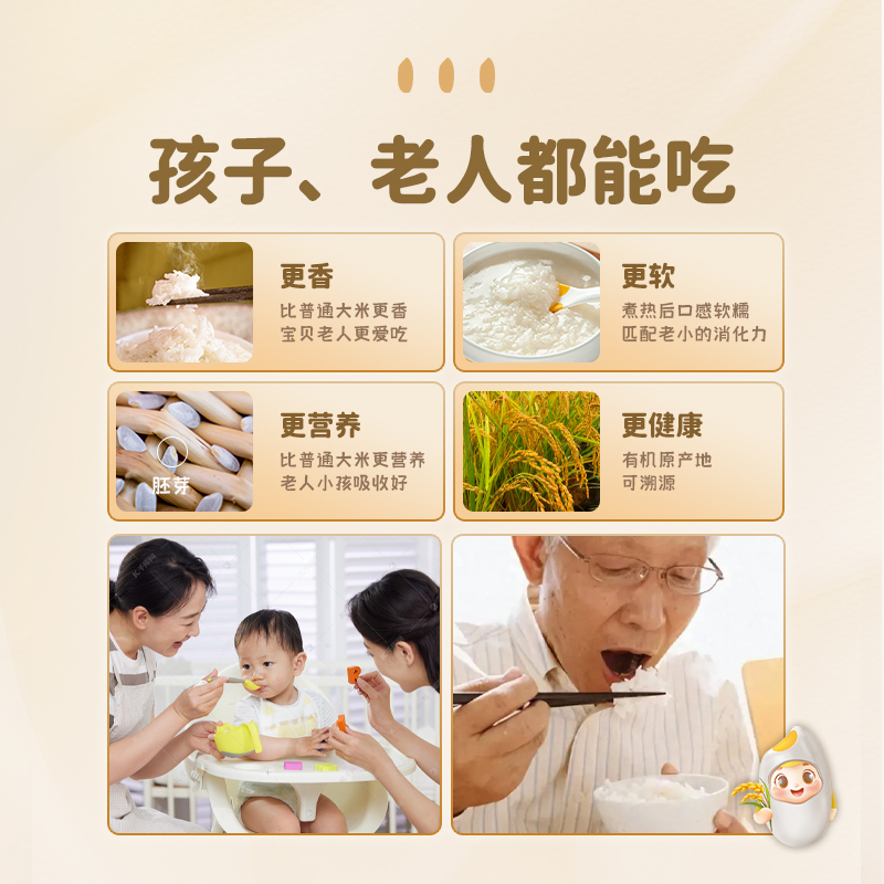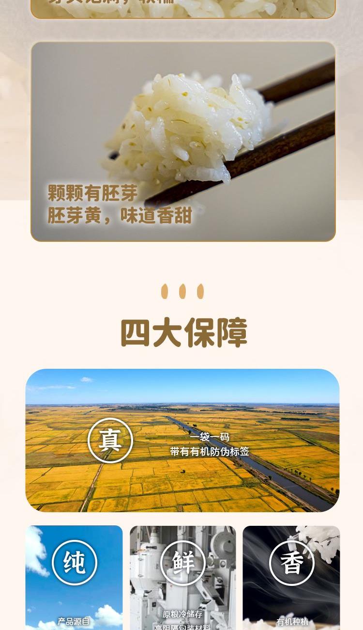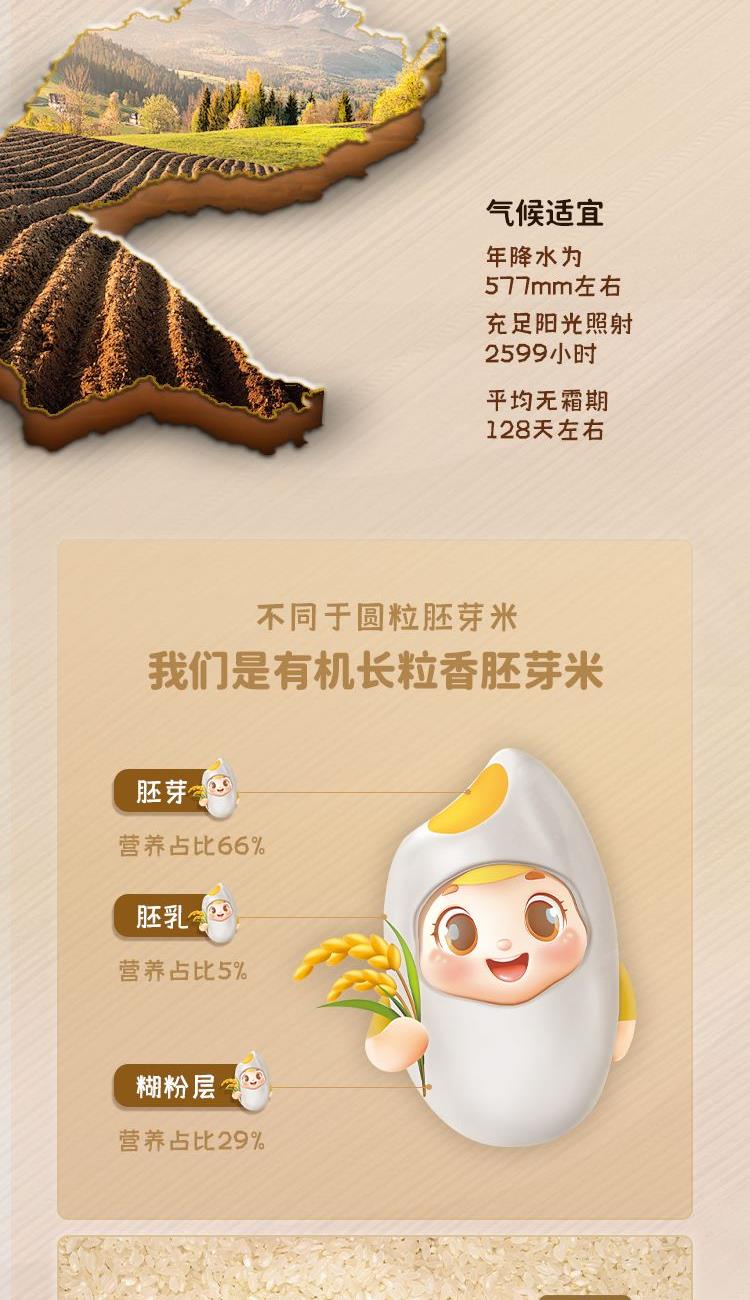 ①产地:庆安县 ②包装规格:2.5kg ③保质期:6个月 ④贮存条件:常温保存 ⑤产品卖点: 口感:优先长粒香大米比市面上的普通胚芽更香,口感更好,由于保留了胚芽和部分糠层,口感比精白米略粗糙,但更有嚼劲。(初方长粒香胚芽米 蒸饭 煮粥 宝宝辅食口感上佳) 颜色偏黄:胚芽部分使米粒呈现淡黄色。 保质期较短,需尽快食用或冷藏保存。 双有机认证 SGS检测机构 704项无农残 高于检测标准2倍