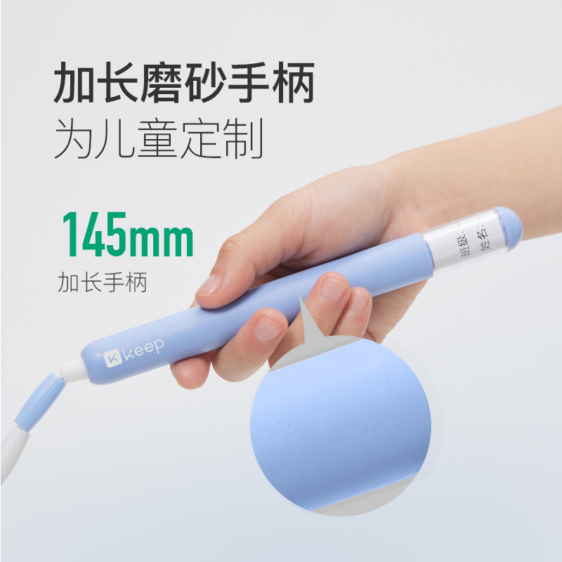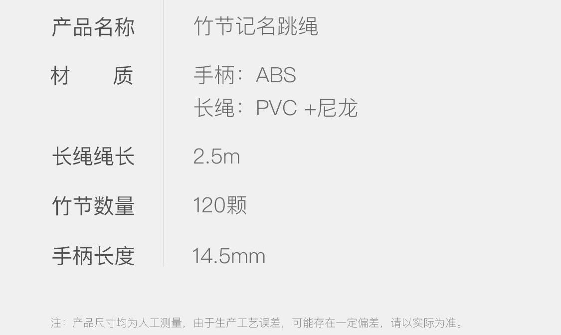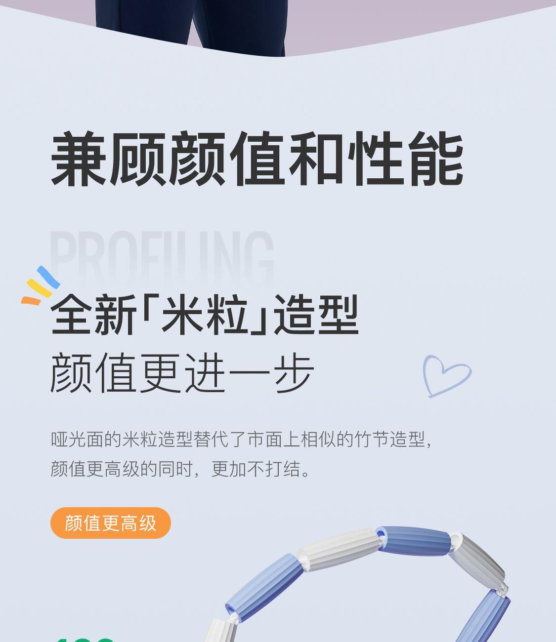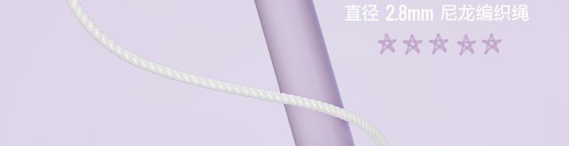 颜色:紫色,蓝色 120颗「米粒」竹节 内置记名防丢贴纸 11g单只手柄重量 14.5cm加长防滑手柄 50W次不断裂次数 可水洗的亲肤环保材质 适合身高1.6m以下
