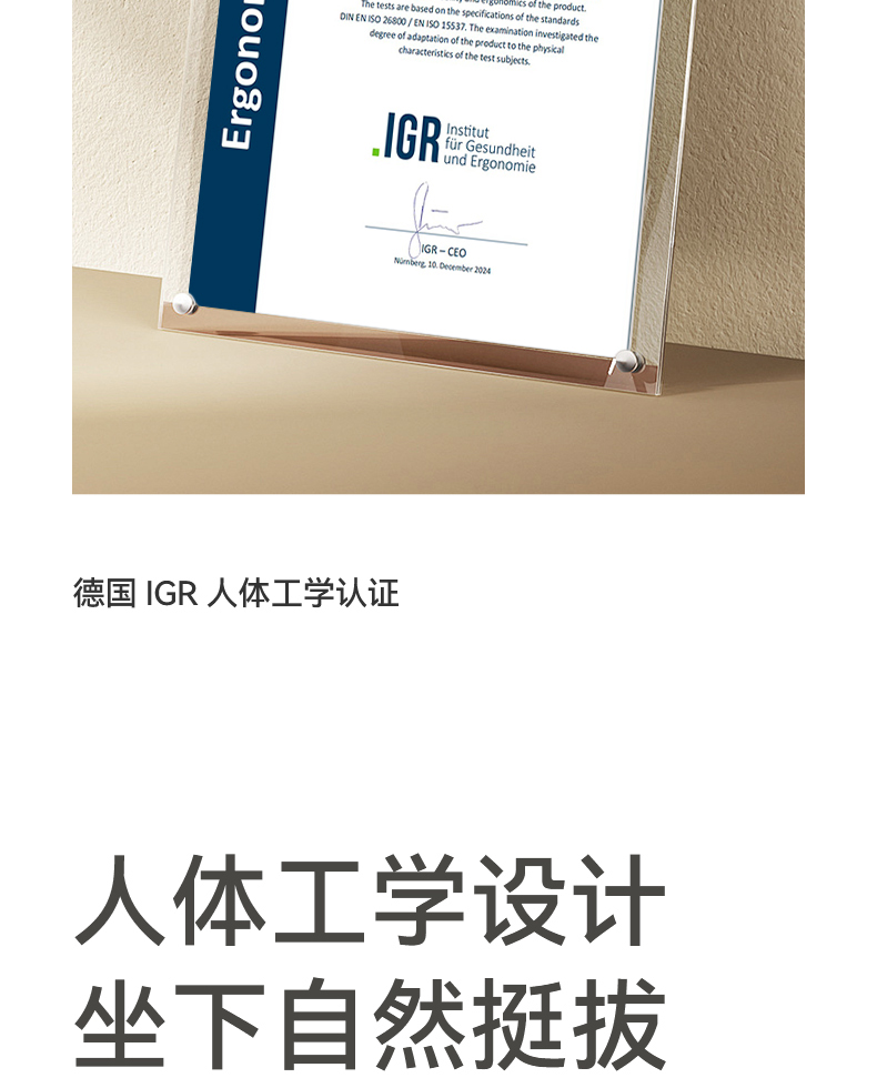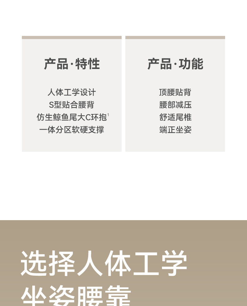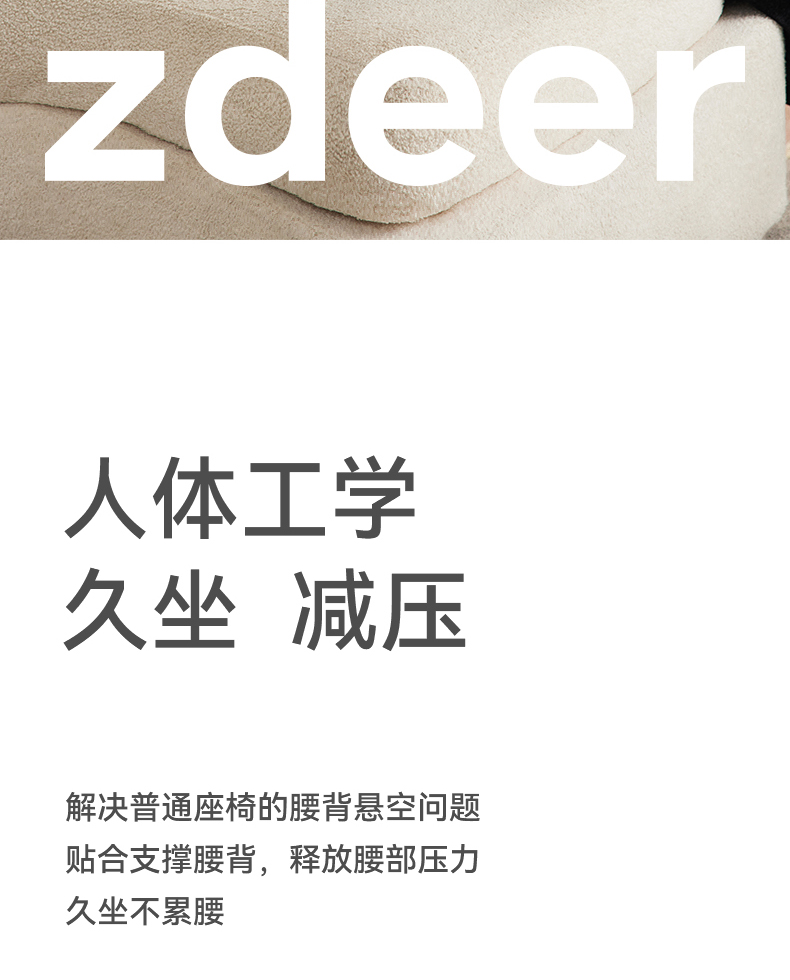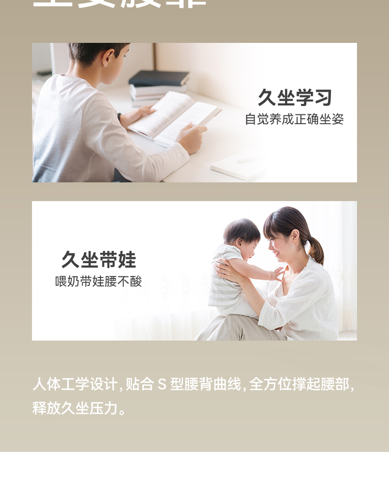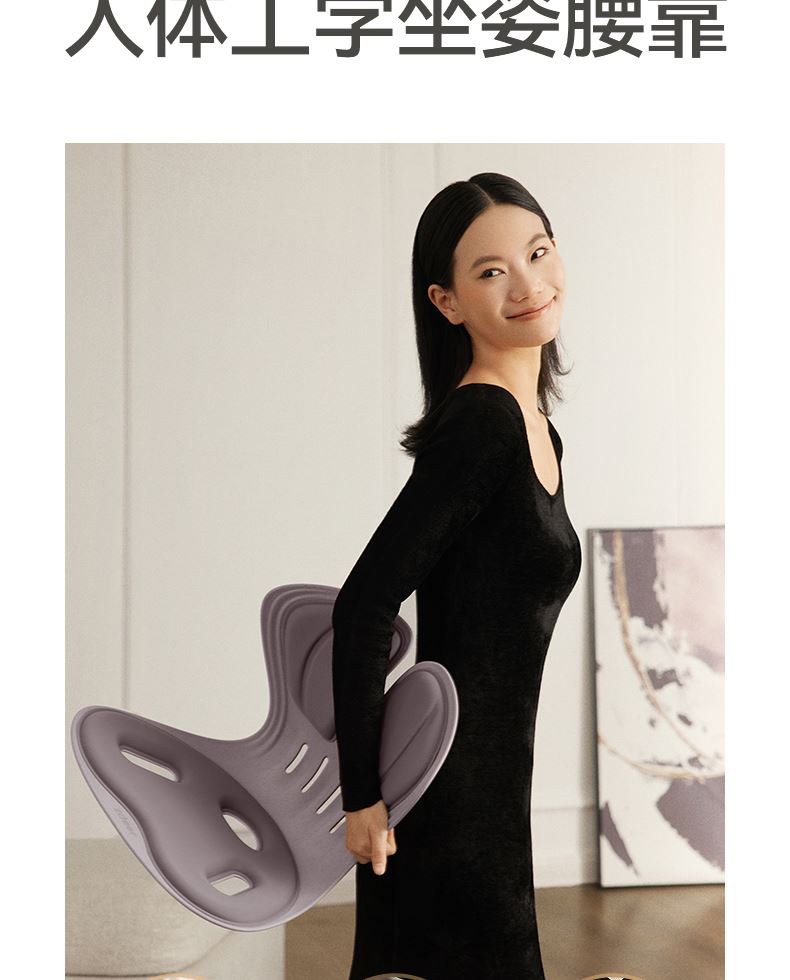 解决普通座椅的腰背悬空问题贴合支撑腰背,释放腰部压力久坐不累腰 人体工学设计,贴合 S型腰背曲线,释放久坐压力
