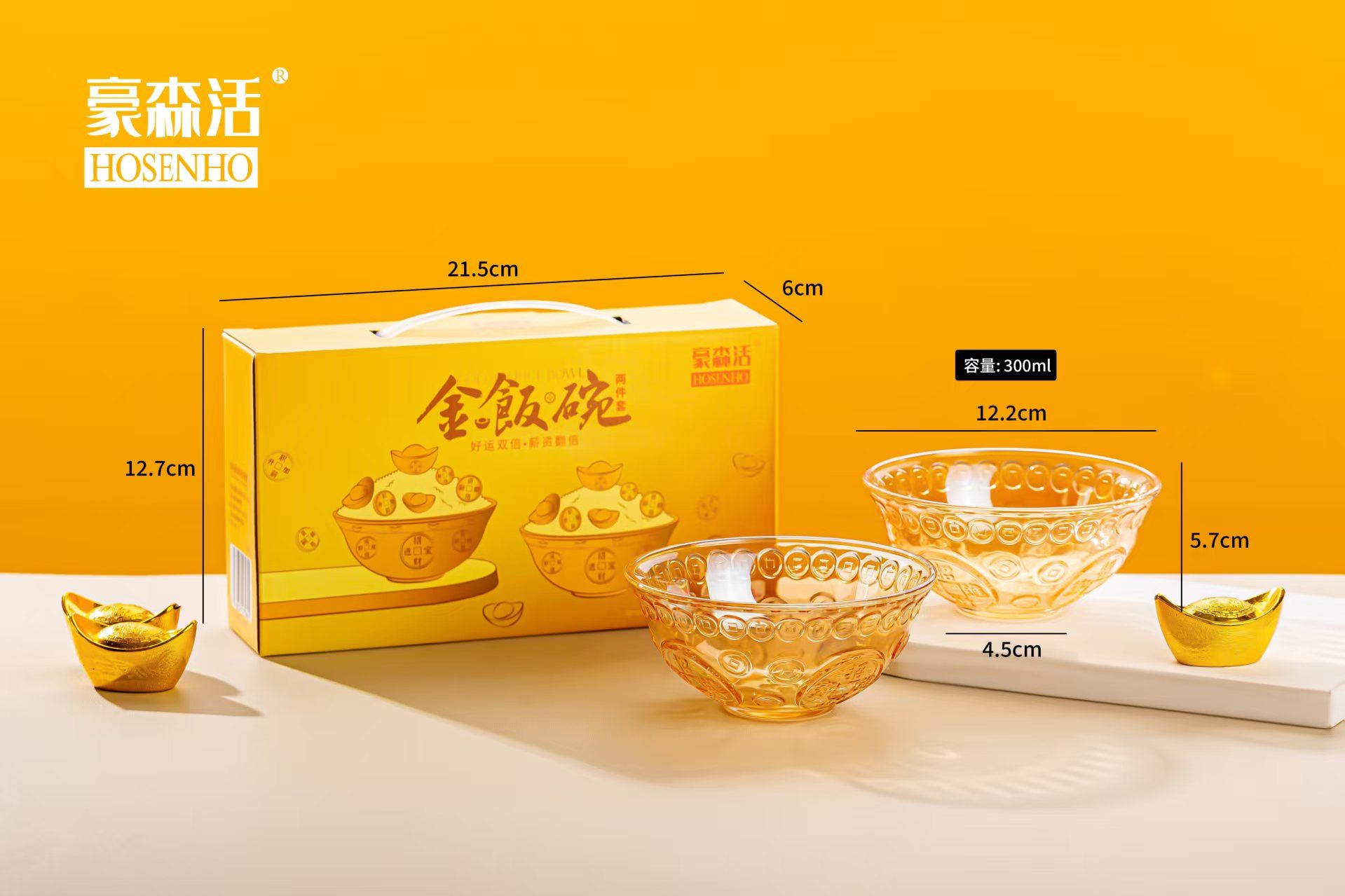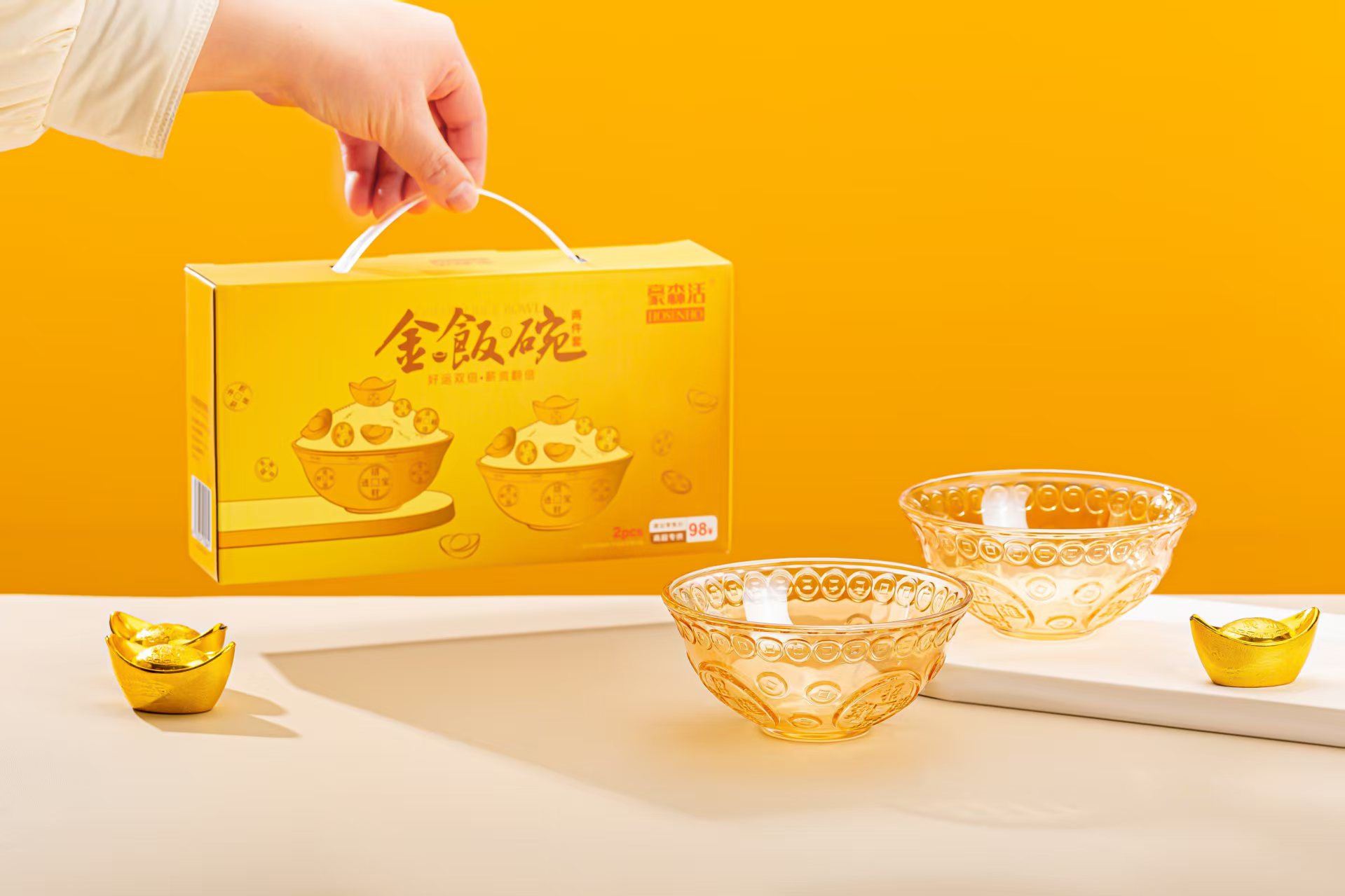 货号:JFW-L2 规格:1*48套 金饭碗:口:12.2cm 底:4.5cm 高:5.5cm 彩盒尺寸:长22.4cm,宽5.8cm高12.8cm 外箱尺寸:50*47*40CM 条 码:6976254570641 产品卖点:“金饭碗”的寓意源于中国社会对职业稳定与生活保障的高度重视,是“铁饭碗”概念的升级版。它不仅承载着人们对理想工作的向往,也反映了特定的社会文化价值观。