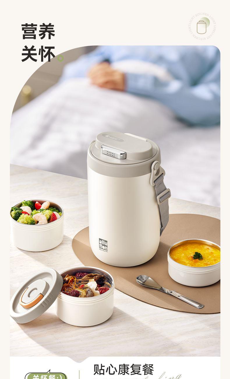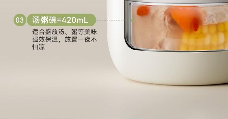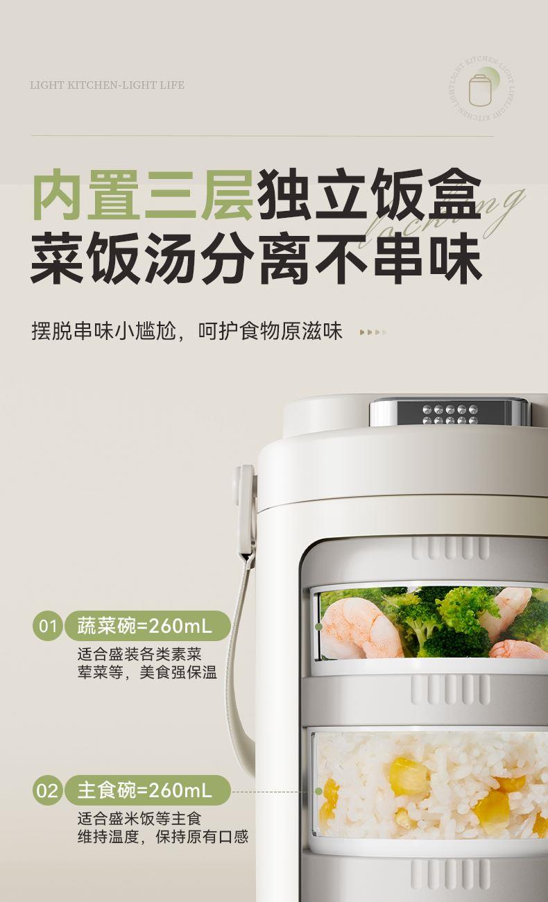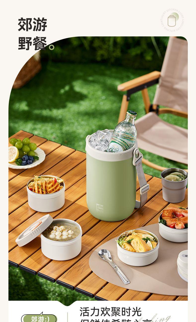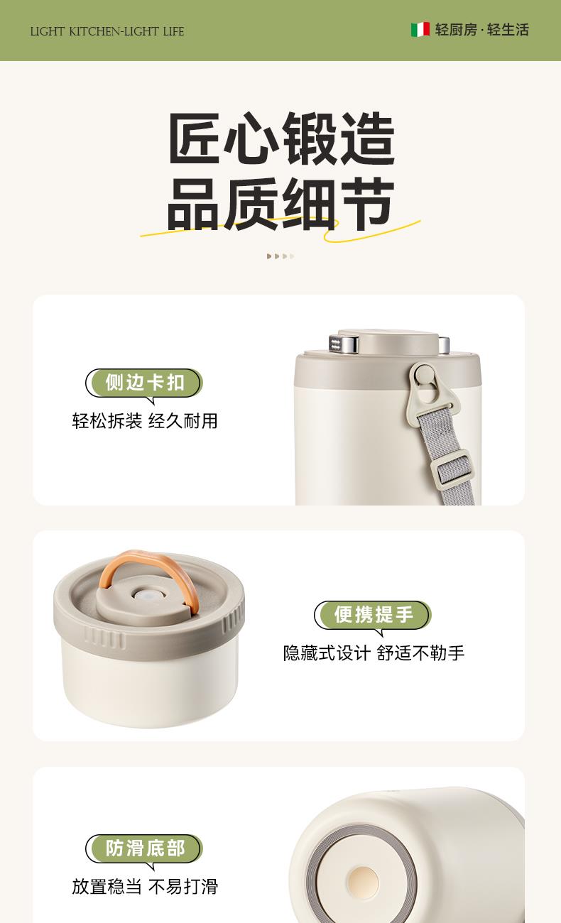 产品颜色:米白色/浅绿色 产品货号:2201032423 外箱尺寸:555*360*550mm 彩盒尺寸:162X162X255mm 1、健康316L材质,食品接触使用更放心 2、三层独立饭盒,菜饭汤分离不串味 3、双层不锈钢抽真空,保温更持久 4、内置硅胶密封圈,倒置防漏 5、单手开盖设计,方便又省力