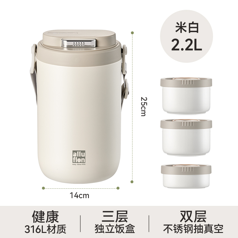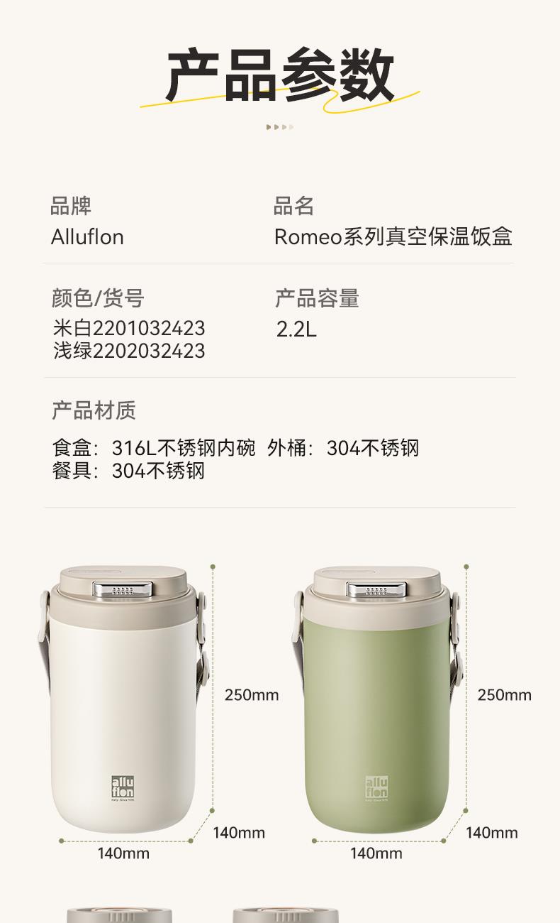 Alluflon阿路弗仑罗马系列真空保温饭盒2.2L