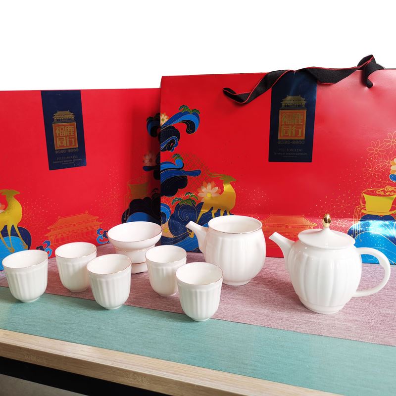 配制:1壶6杯1公道杯 1茶饼 1礼盒 手提袋 规格:壶:13.5*11cm 公道杯:11*7cm 杯:5.5*5.2cm 茶饼:19*3cm 材质:羊脂玉瓷 24K真金 推荐说明:描金羊脂玉瓷,精选优质高价瓷土 ,瓷质细腻润滑,似凝脂,如美玉。茶具描真金。 配1福鼎老白茶茶饼。品茶,赏瓷。
