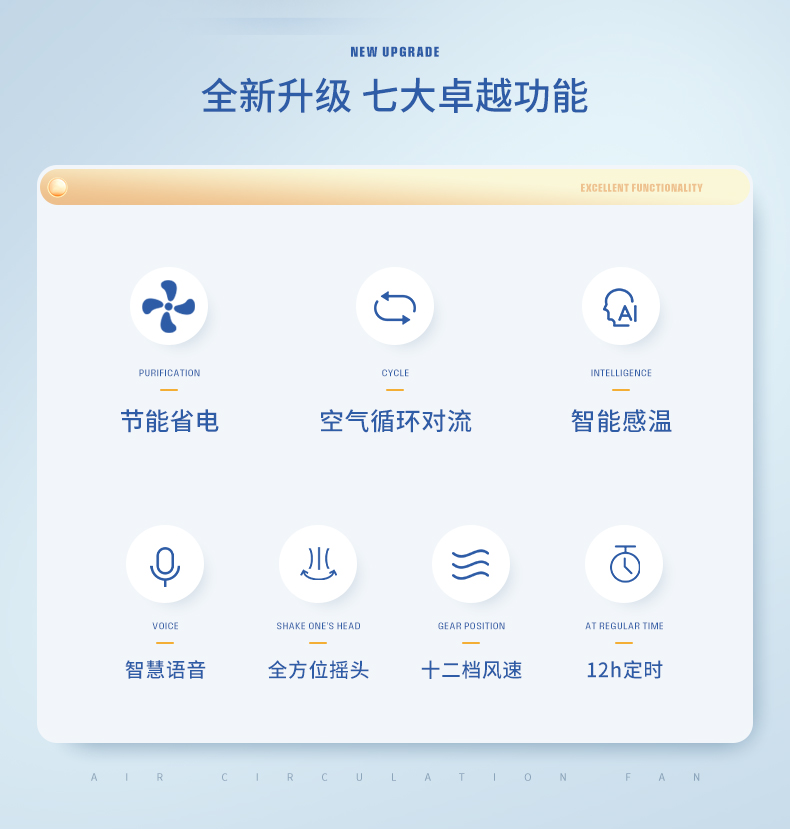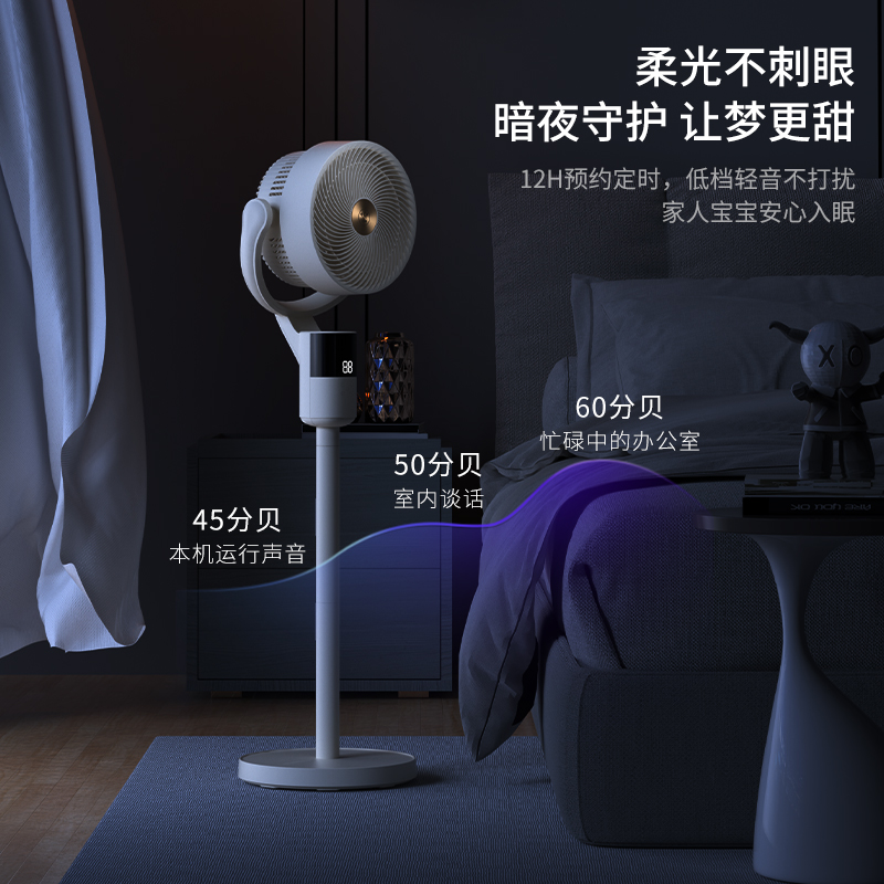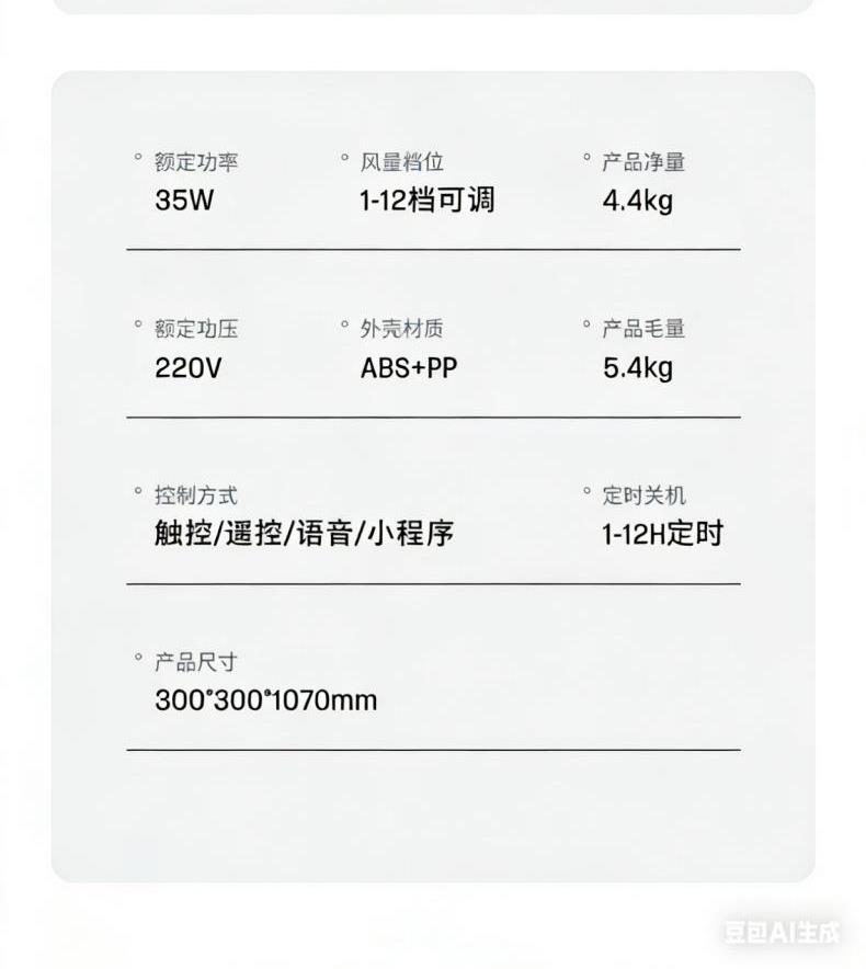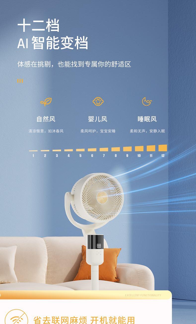 1、12档风速调节,12小时预约定时,AI智能变频;