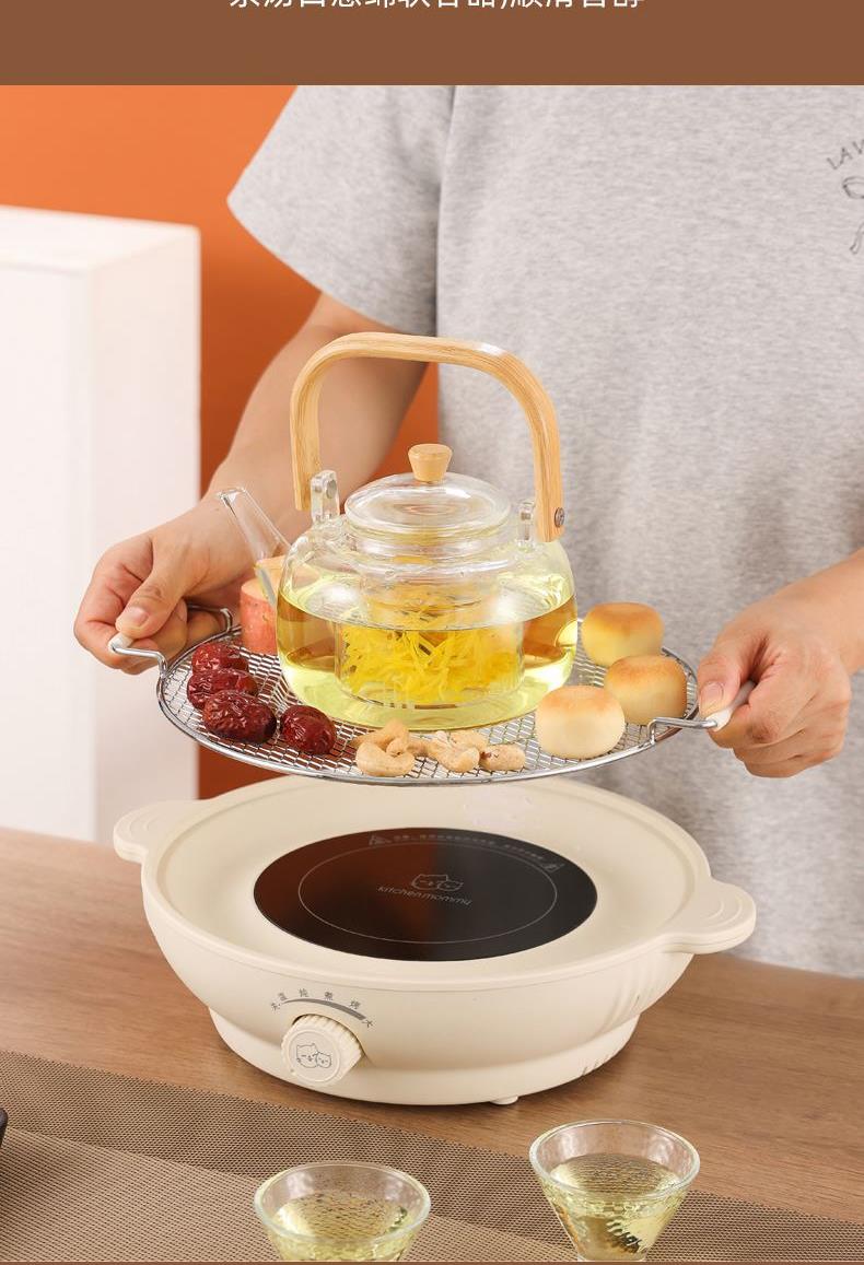 1、微晶面板设计,受热稳定均匀,一炉两用,可煮可烤