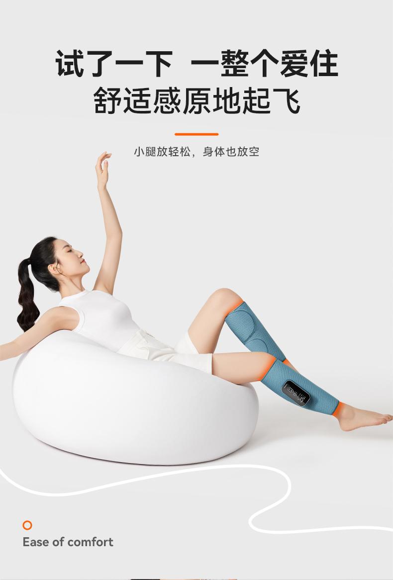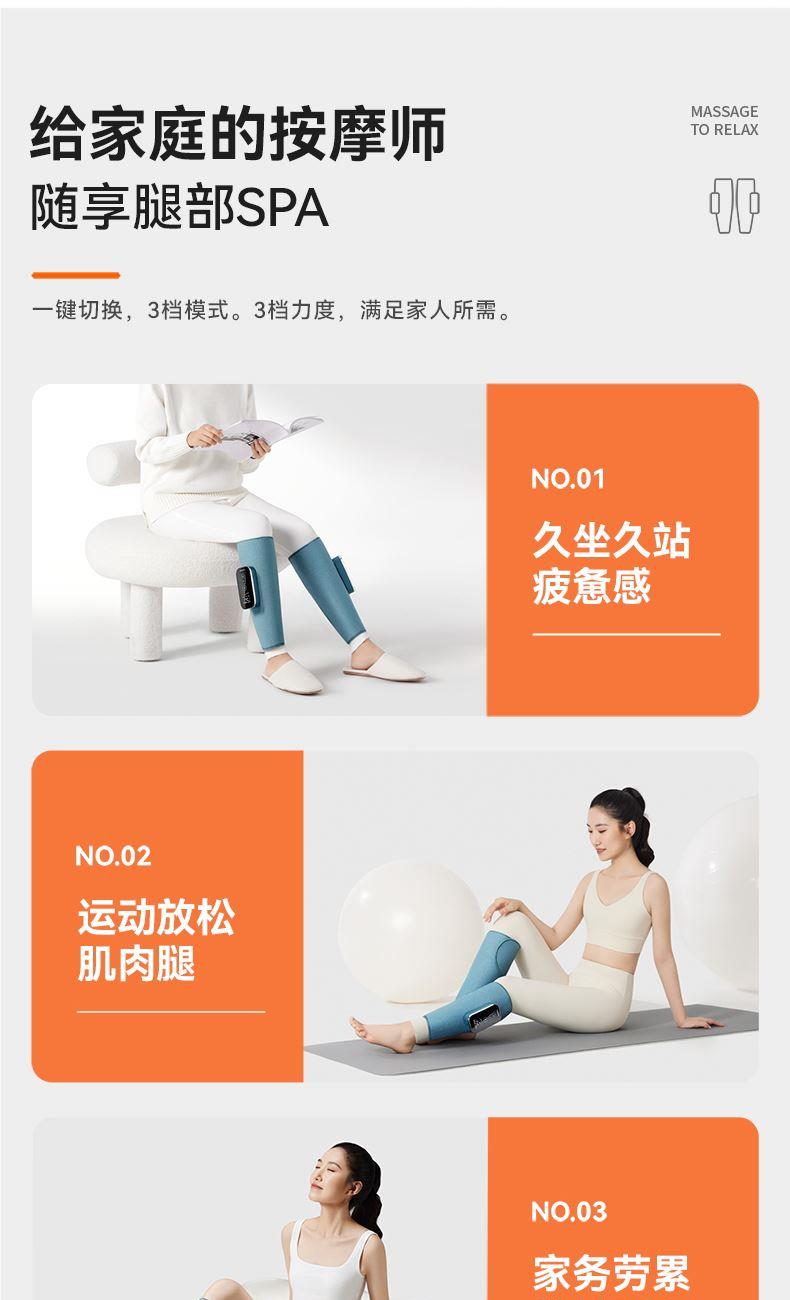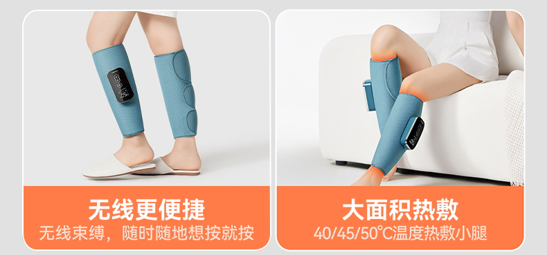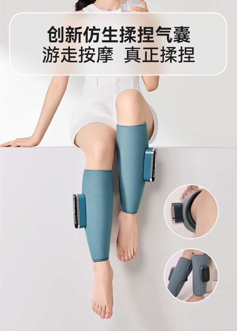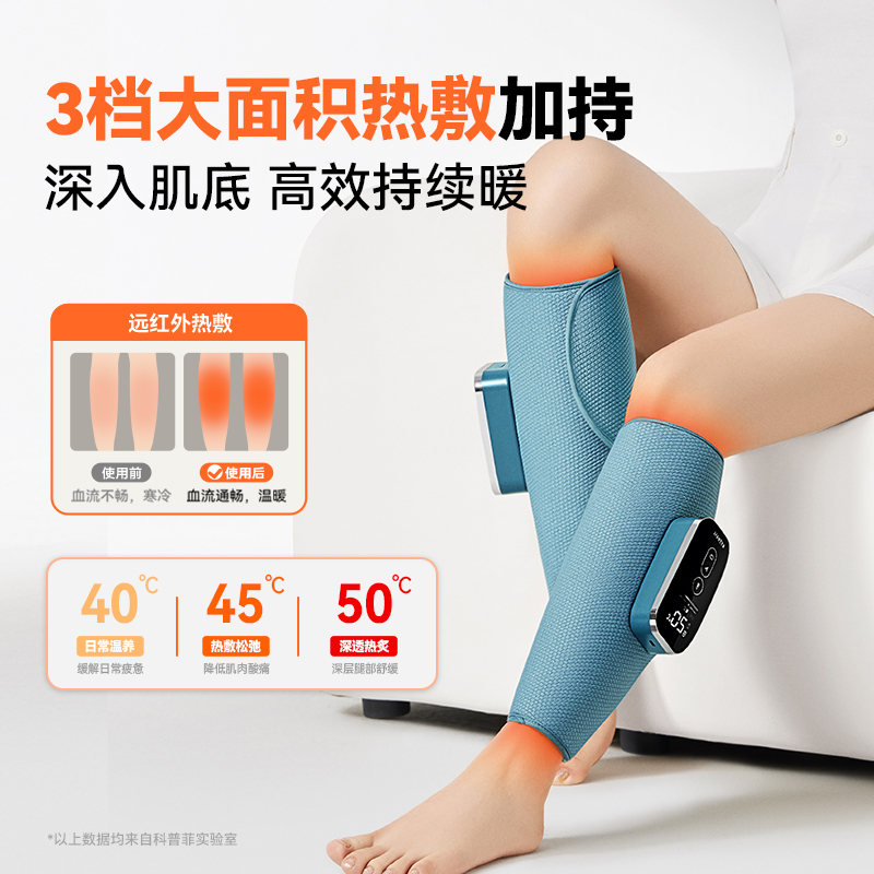 【电量】--3600毫安电量可用3小时左右(比市场上同类产品电池大三分一) 【大力度】--科普菲自研大气泵,按摩力度大速度快 【多样化】---3段式气嚢,可组合多样化按摩方式 【发热面积】--石墨烯发热片,发热面积大于市面上产品的一倍