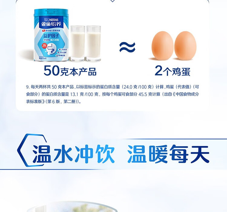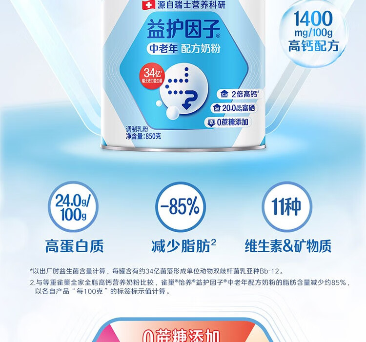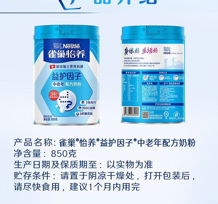 雀巢(Nestle)怡养益护因子中老年高钙奶粉850g罐装
