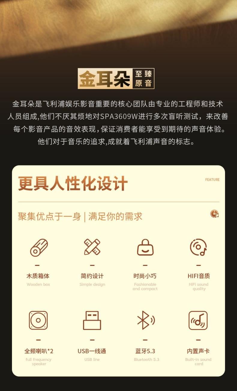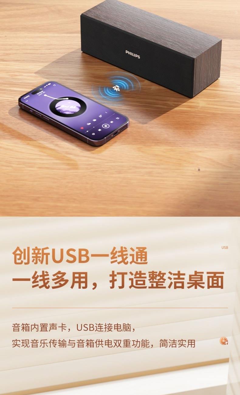 飞利浦/Philips桌面木质音箱SPA3609