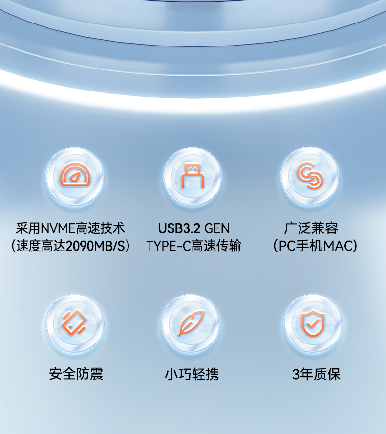 采用Type-C/USB3.2接口 固态TLC高速传输 电镀商务蓝金属效果,美观大气 专属礼盒包装,送礼佳品 产品尺寸:63*31*9mm 包装尺寸:135*80*30mm 单品重量:50g