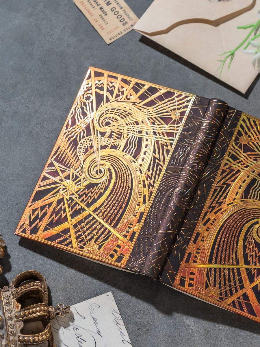 产品:绘梦灵感-查宁螺旋木杆水性笔笔记本礼盒套装 创作灵感:封面灵感来源于美国纽约查宁大厦大堂的通风格栅,该格栅的主体是“机遇之城”。 纽约查宁大厦(Chanin Building)高197.80m,56层,1929年建成。以其装饰艺术风格而闻名。1978年,查宁大厦被纽约市地标保护委员会指定为城市地标。并于1980年被列入历史地点名录。 礼盒组件:黑柿木水性笔1只、黄铜笔座1个、中本笔记本、天地盖礼盒、彩色礼袋 礼盒尺寸:220*220*55mm 礼袋尺寸:255*230*60mm 本子尺寸:130*180mm 本子页数:144页 纸张材质:120克重无酸纸