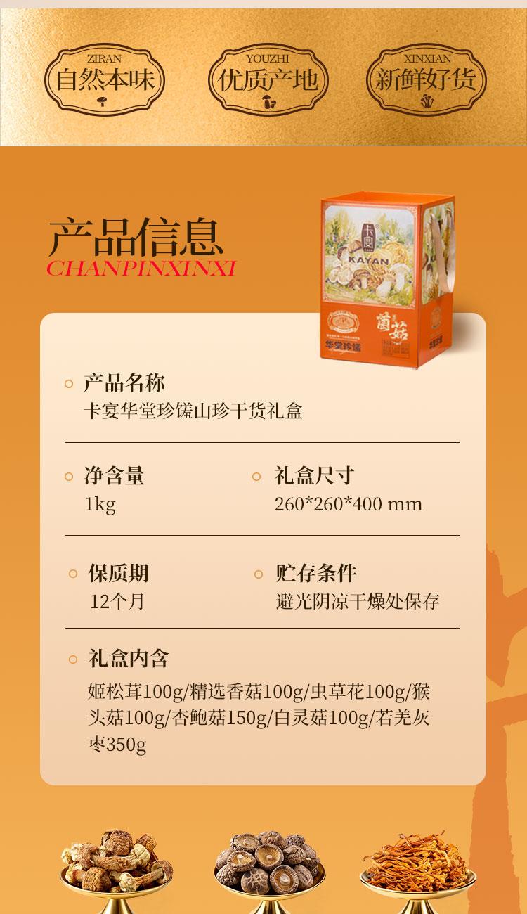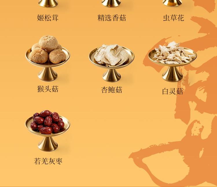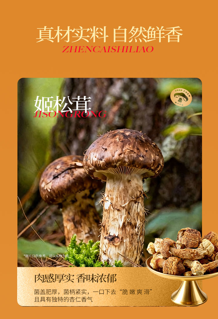 姬松茸100g 精选香菇100g 虫草花100g 猴头菇100g 白灵菇100g 杏鲍菇150g 若羌灰枣350g