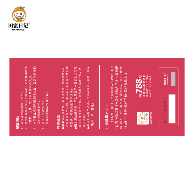 田蜜日记水果提货券788型