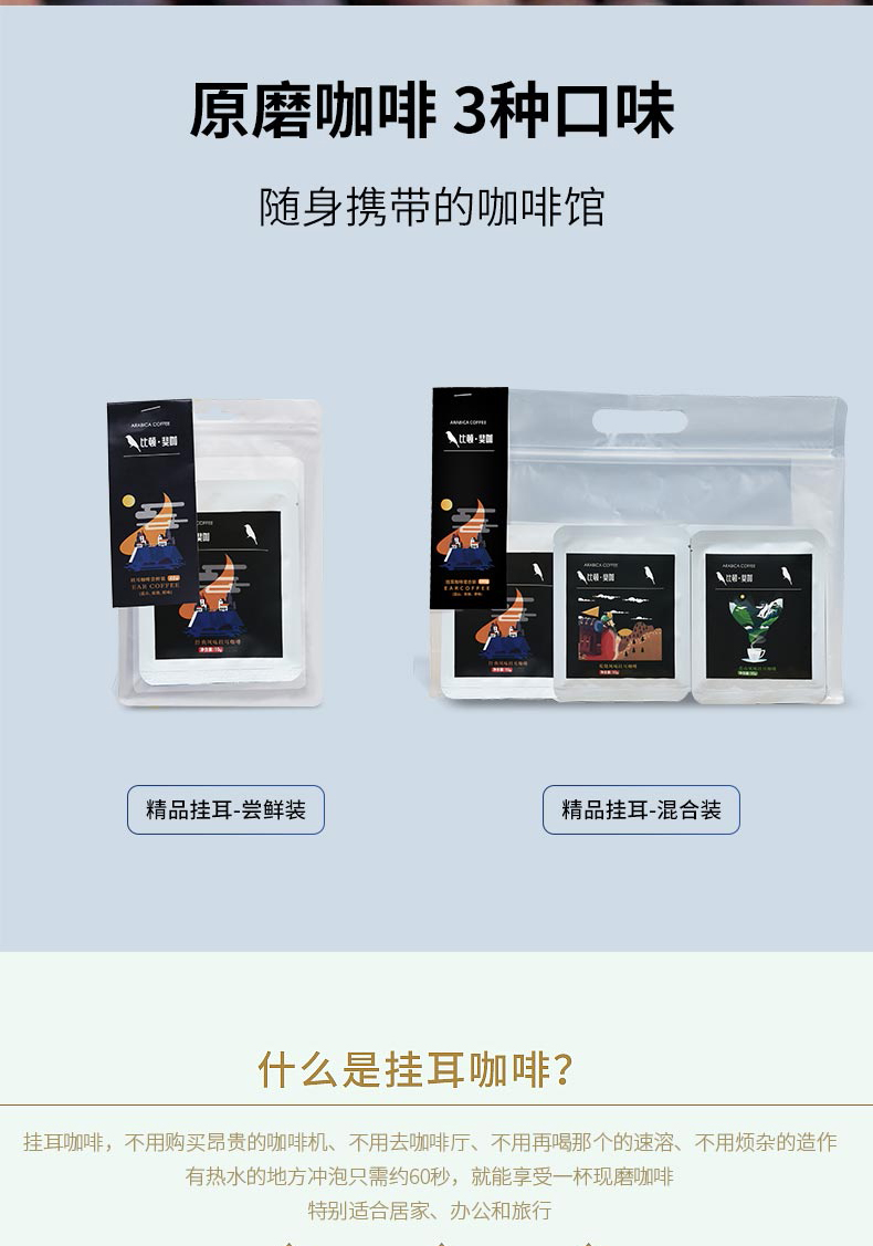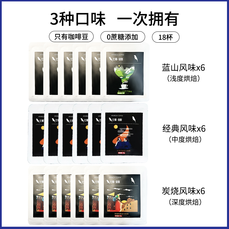 挂耳清咖,口袋里的咖啡馆,旅行、办公室必备,简单、方便、易携带. 10克*18包/袋 蓝山风味*6 经典原味*6 炭烧风味*6