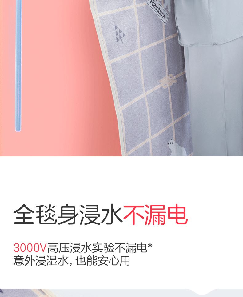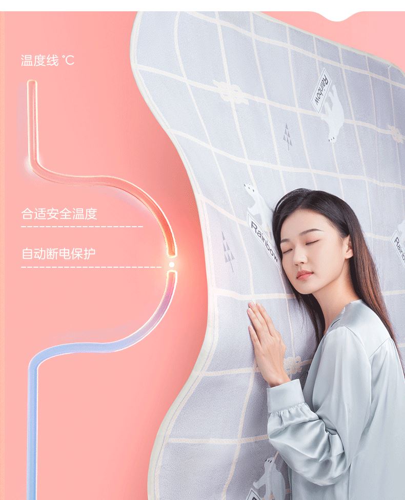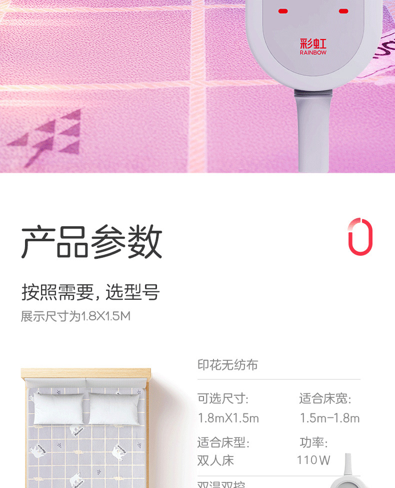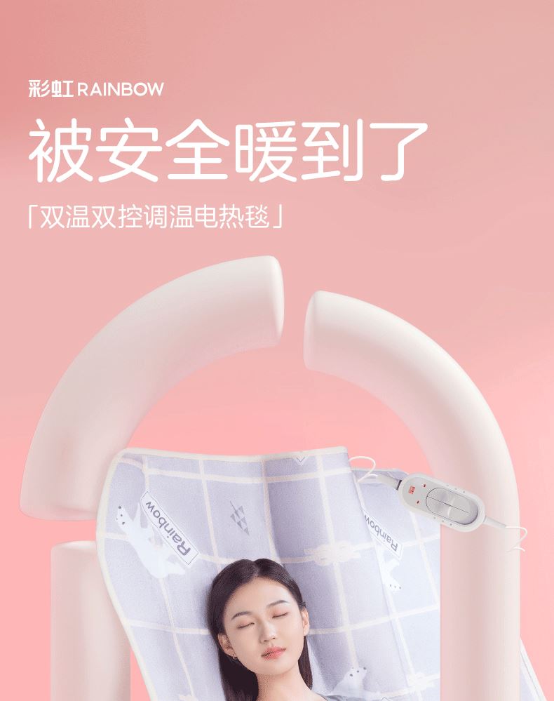 彩虹双温双控化纤印花双人电热毯1.8*1.5米XL1352