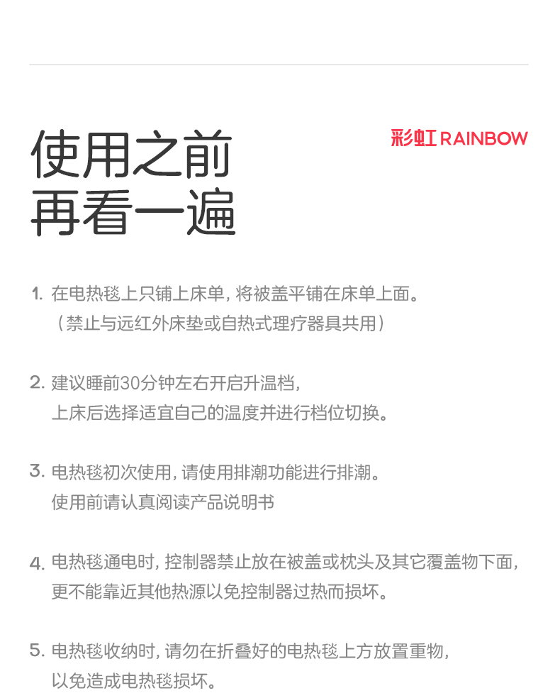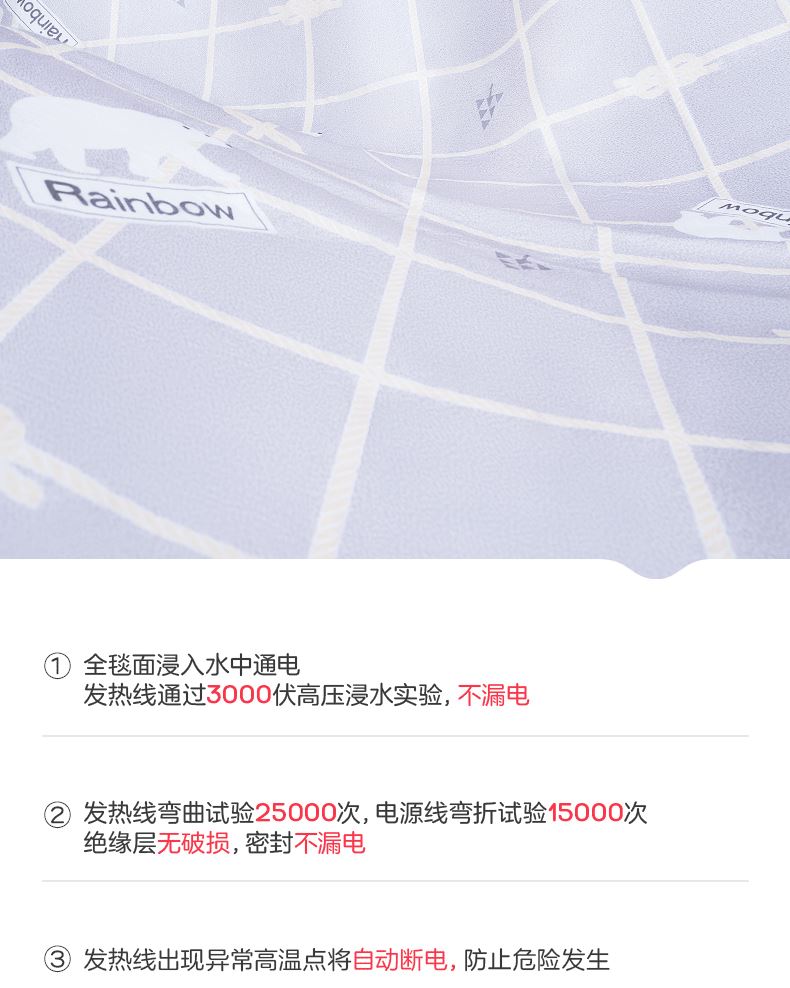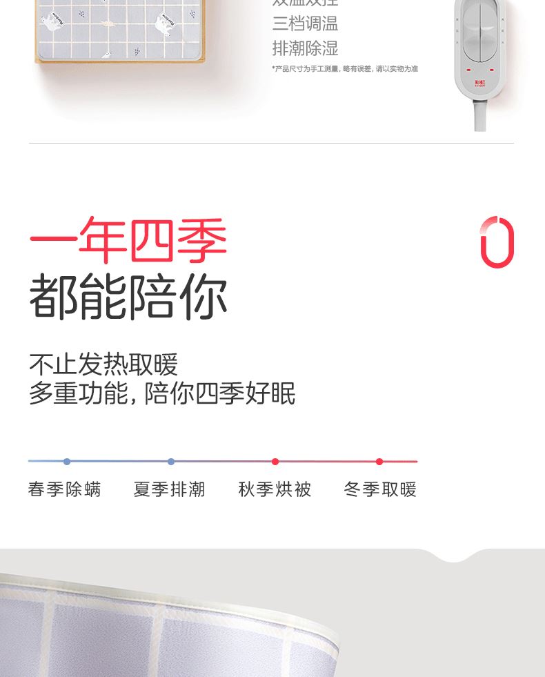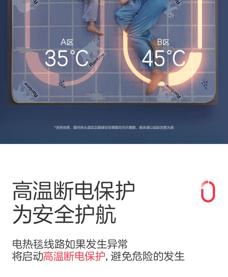 彩虹双温双控化纤印花双人电热毯1.8*1.5米XL1352