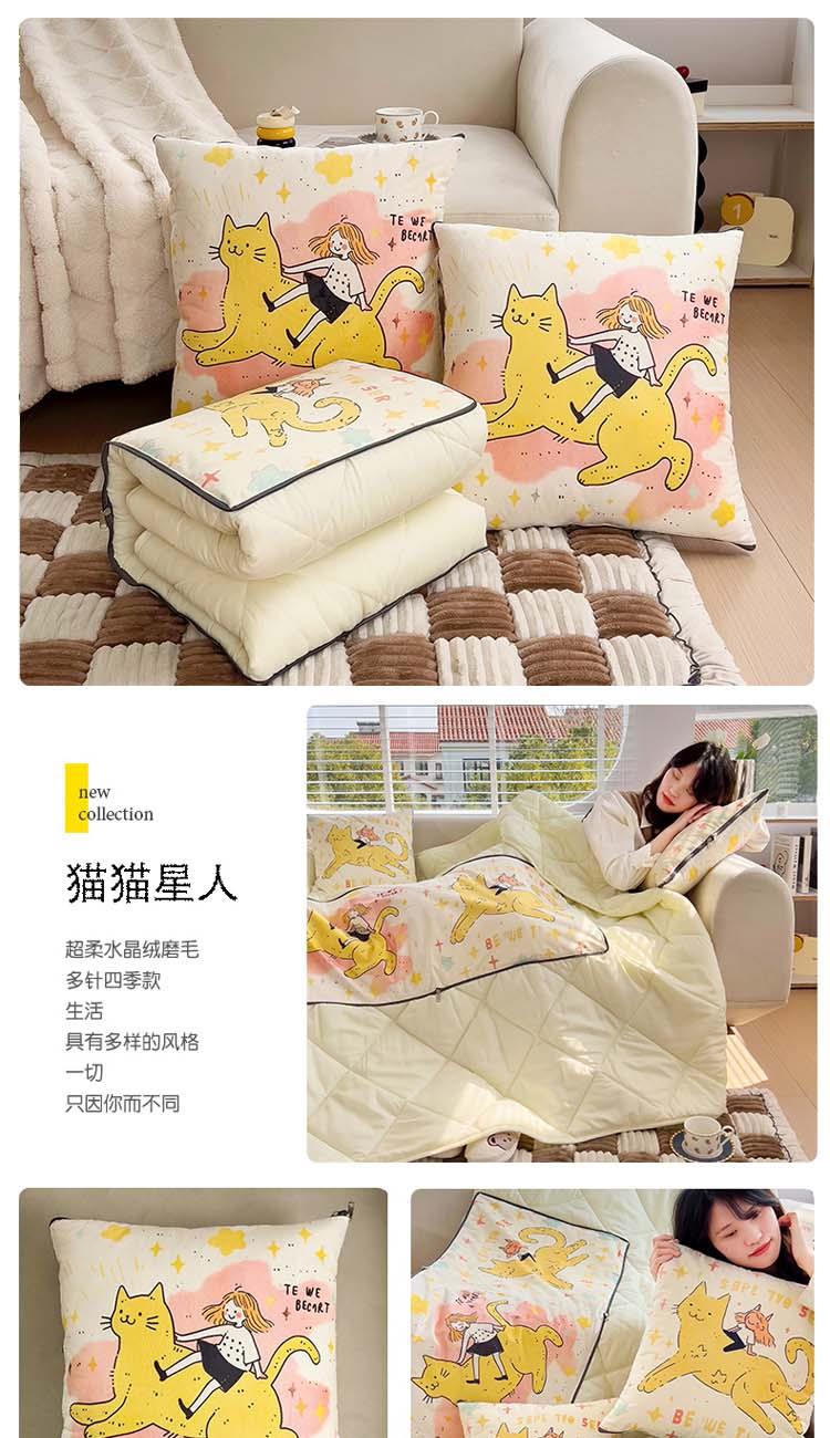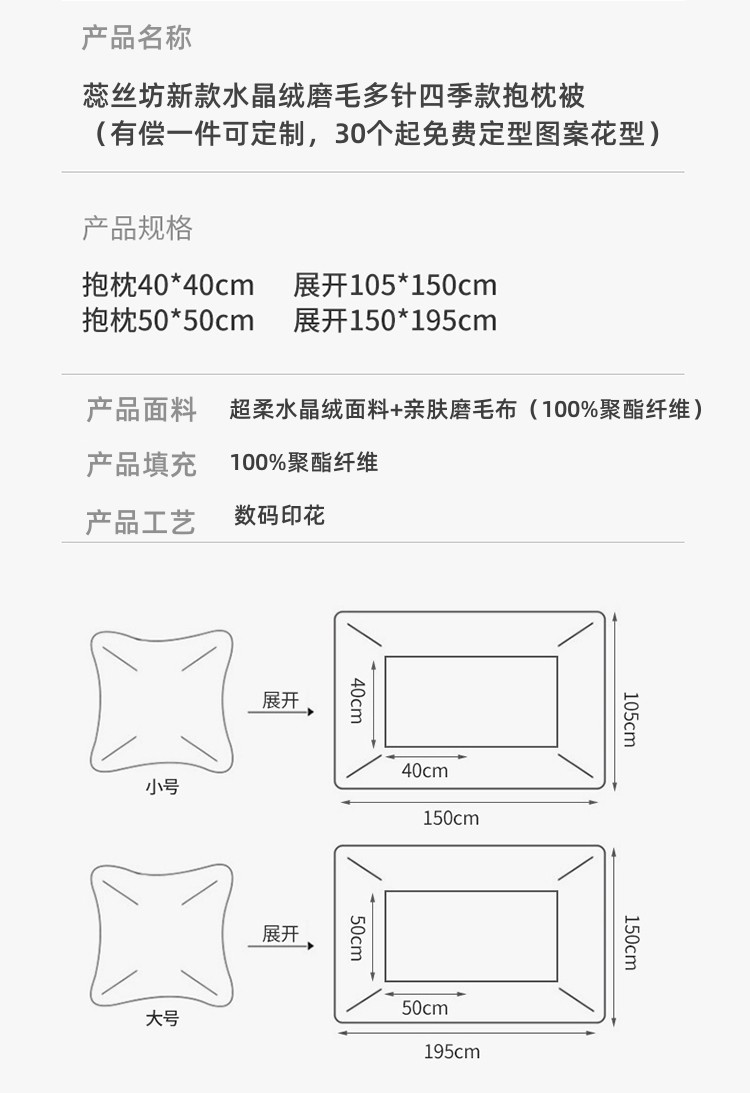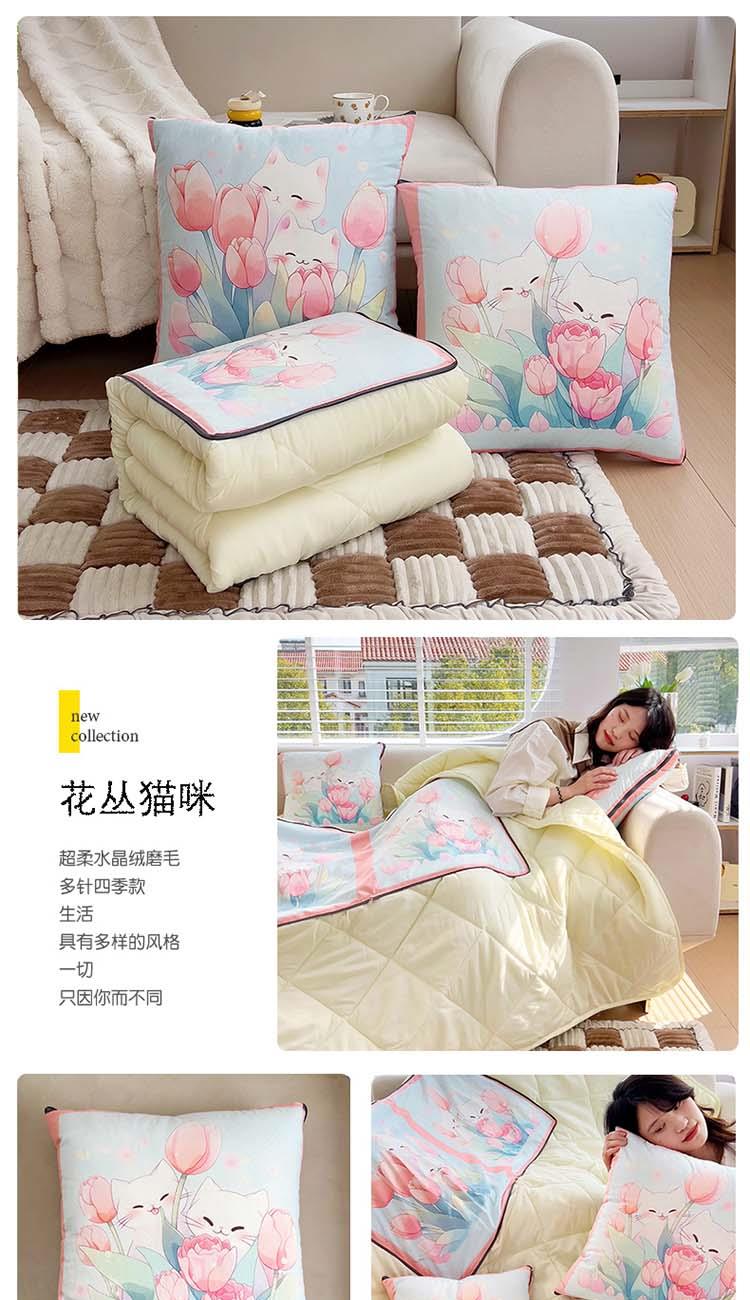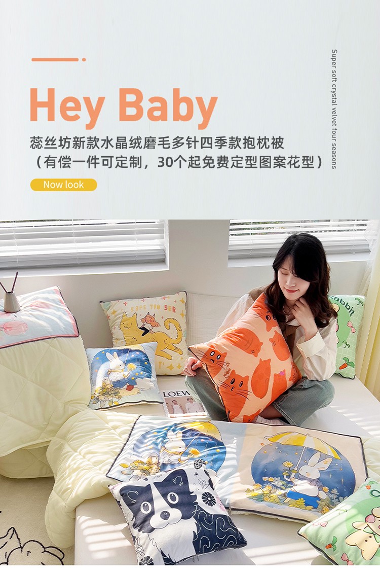蕊丝坊家纺新款水晶绒磨毛多针四季款抱枕被