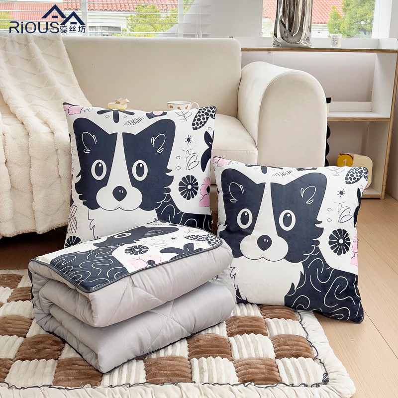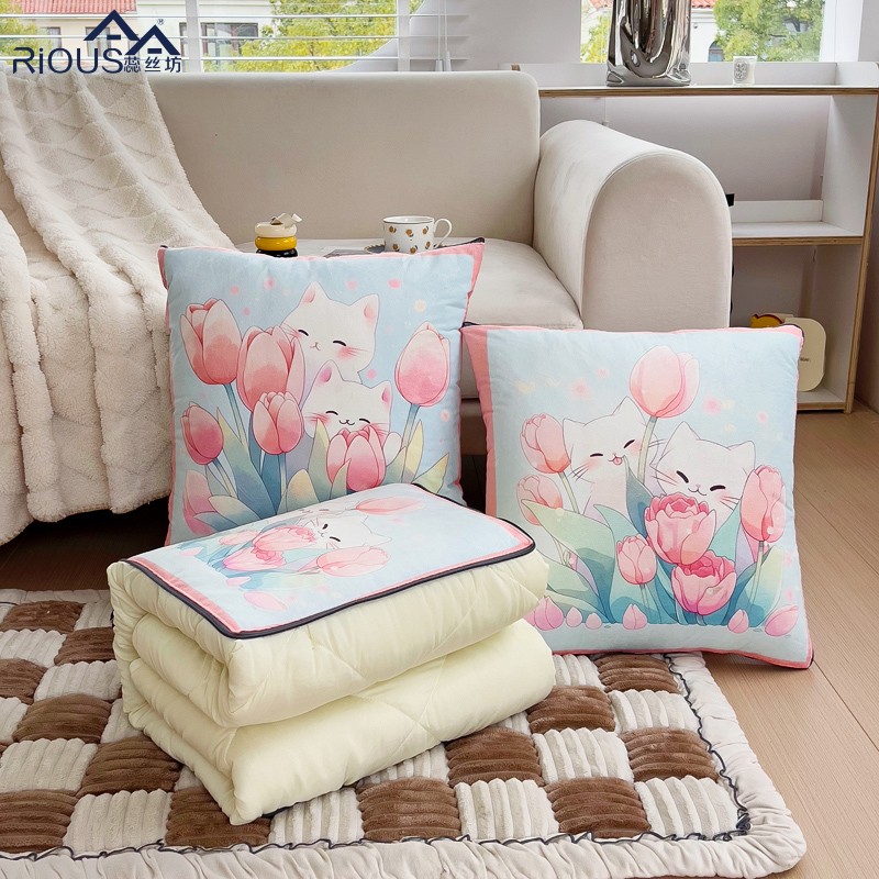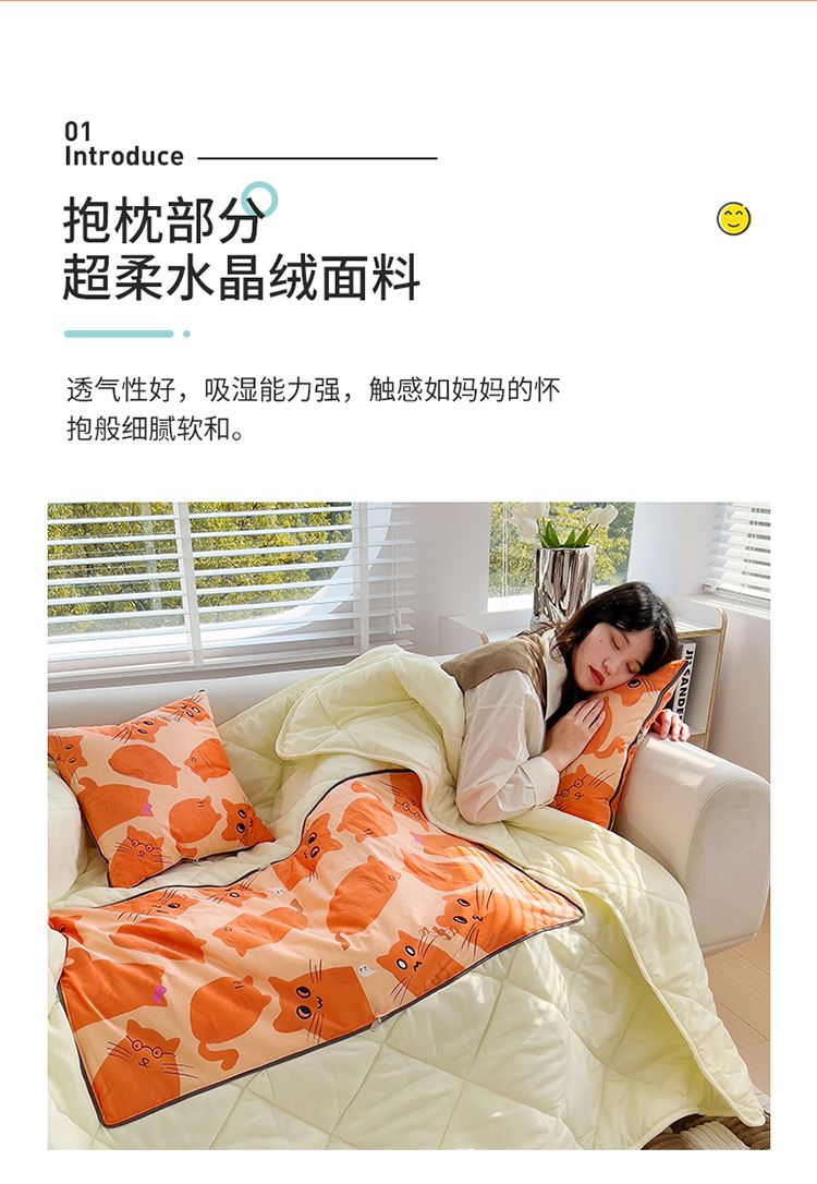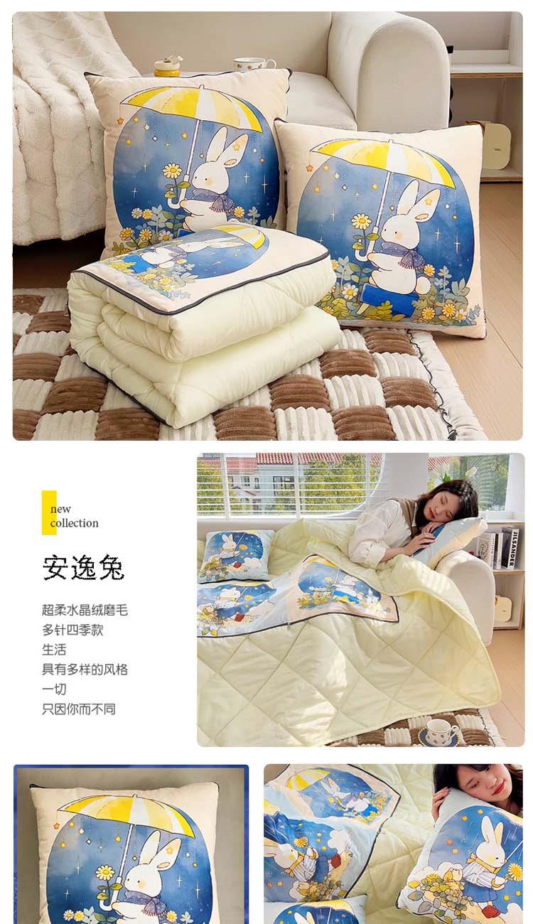 蕊丝坊家纺新款水晶绒磨毛多针四季款抱枕被
