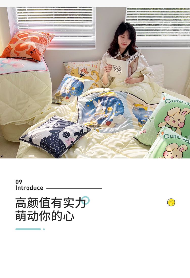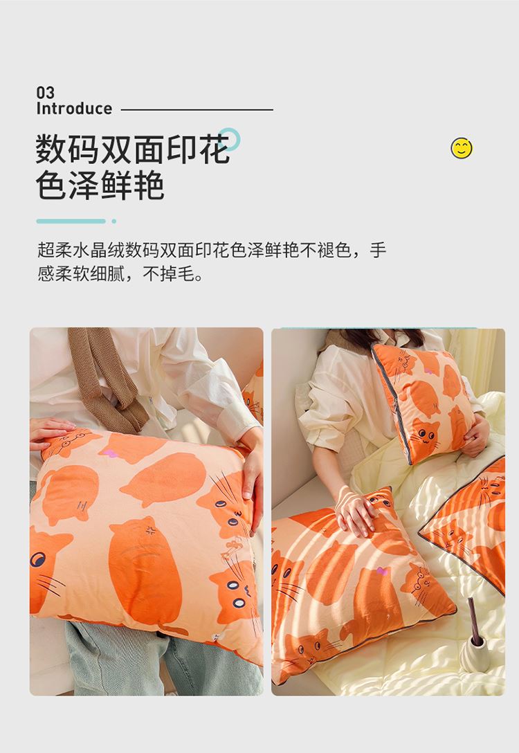 超柔水晶绒数码双面印花色泽鲜艳不褪色,手感柔软细腻,绒毛紧密,高克重面料,不掉毛,保暖透气不闷汗。亲肤磨毛布料采用多针绗绣包边工艺,针脚细腻,整张棉填充,可机洗,久洗久用不起坨不跑棉,不褪色,不起球。四季可用,贴身舒适。