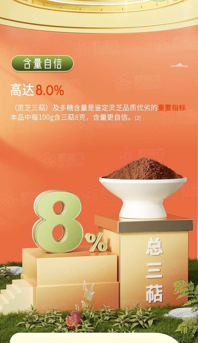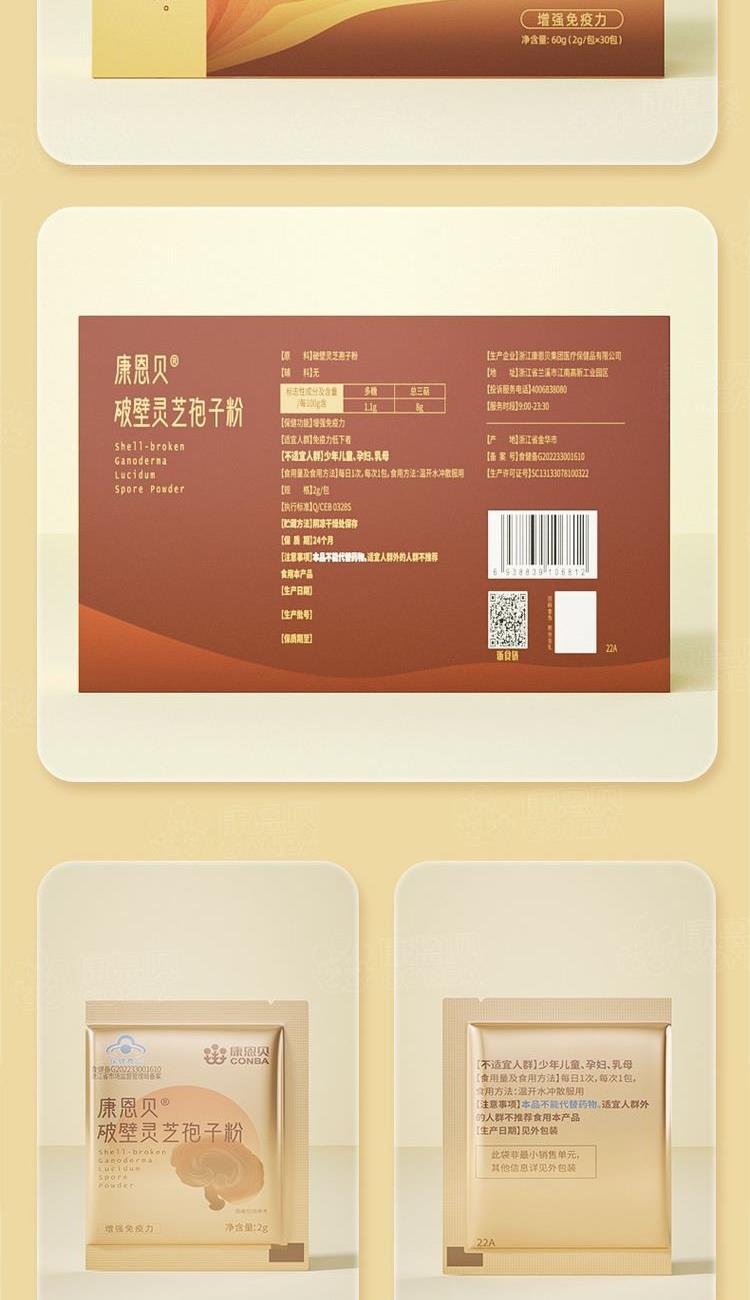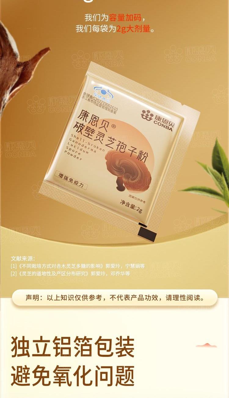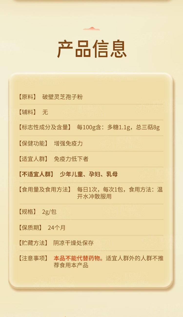 2g/包*30包*1盒 高三萜赤灵芝质地厚实、坚硬、营养成分含量丰富 低温物理破壁技术避免金属污染,吸收更充分 灵芝三萜含量高达8%