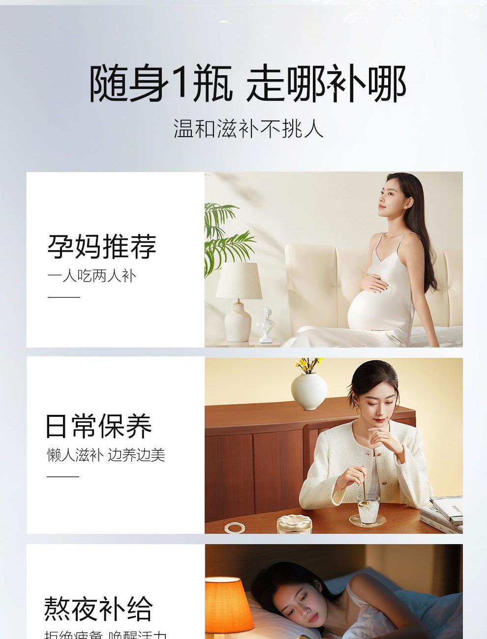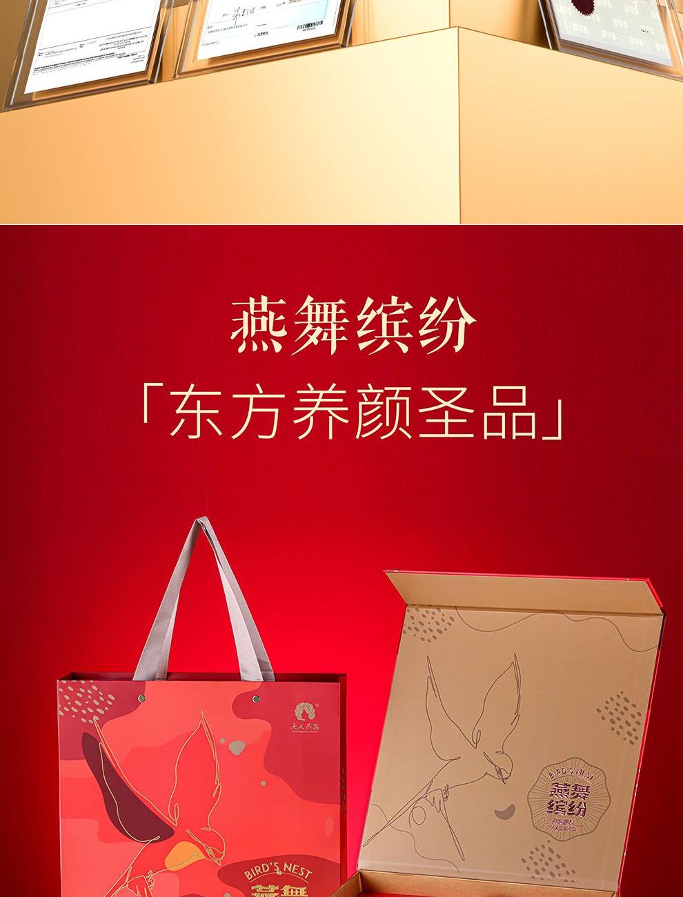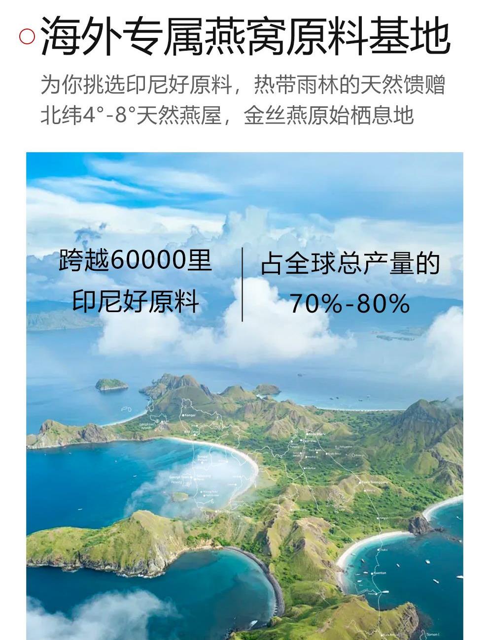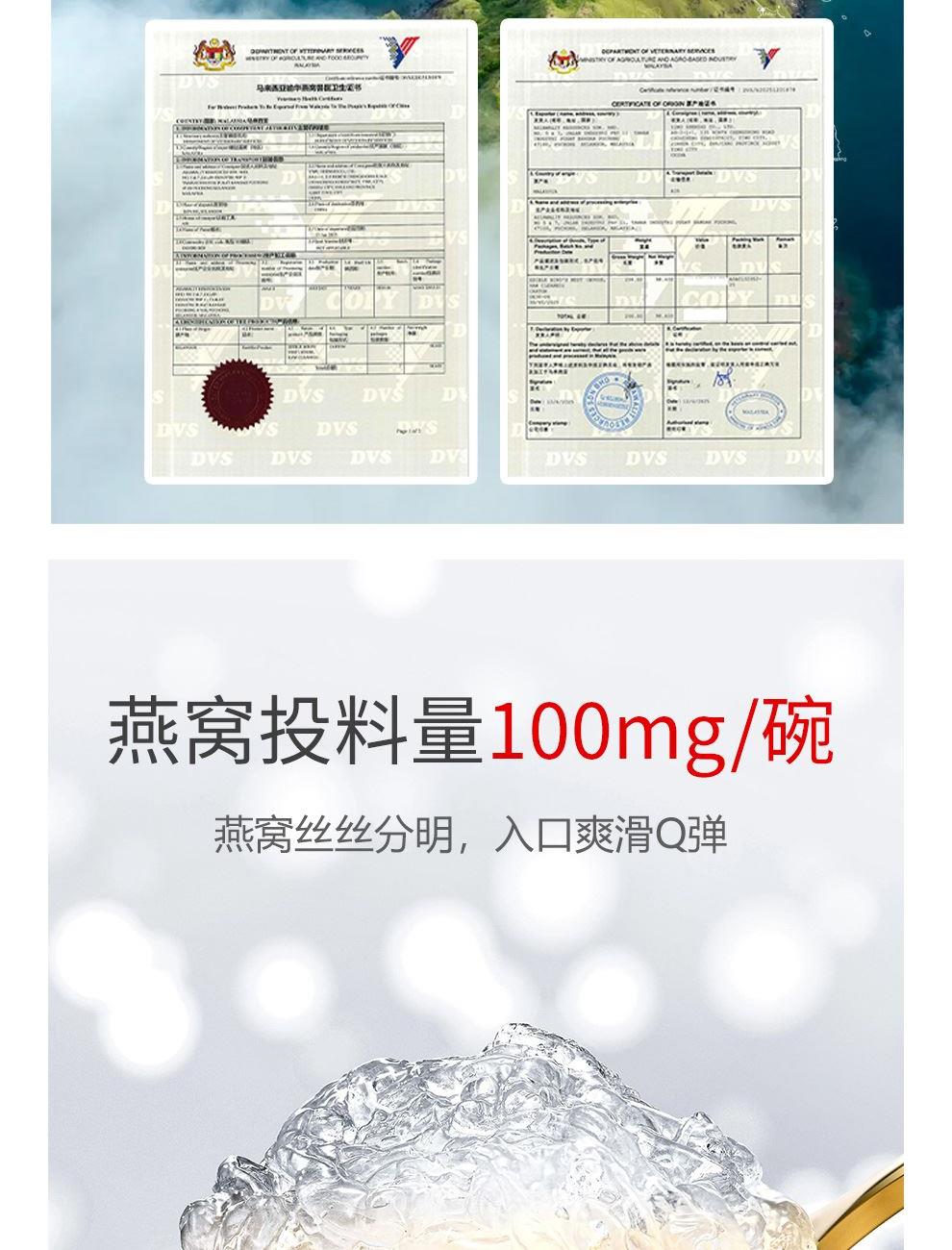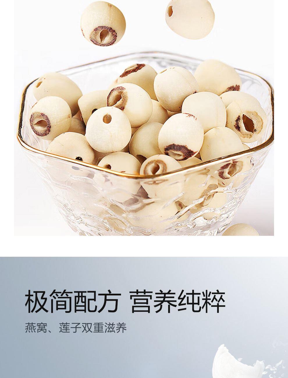 规格:樱花燕窝露190克*2、燕窝莲蓉沙180克*2、人参燕窝羹180克*2 卖点:口感细腻顺滑,燕窝的软糯与樱花的清香相互融合,给人带来清新、甜美的味觉体验。结合了燕窝的滋补与莲蓉的香甜。燕窝的优质蛋白质和莲蓉中的莲子、糖等原料相互搭配,莲子含有丰富的蛋白质、钙、磷、铁等营养成分。 将人参的滋补功效与燕窝的营养成分相结合。