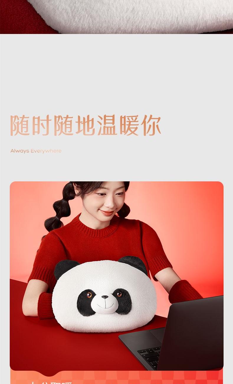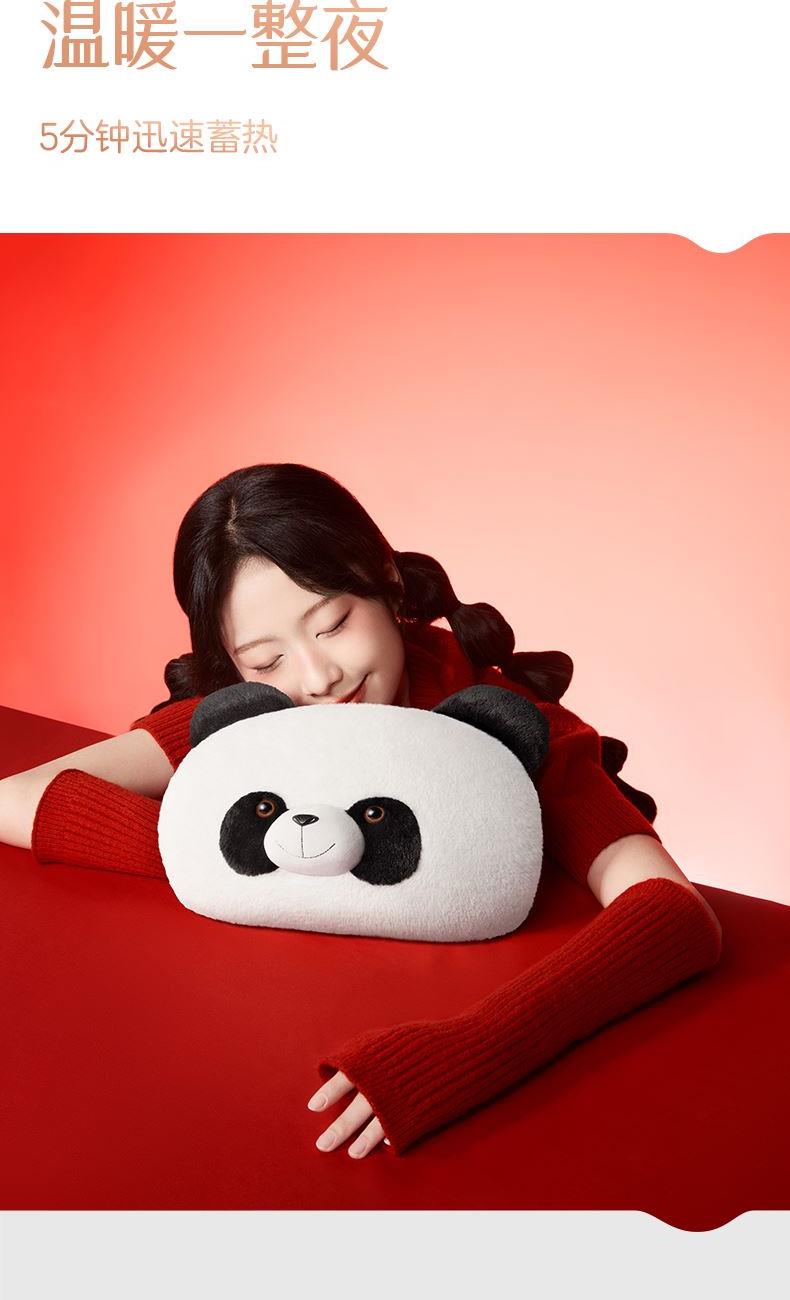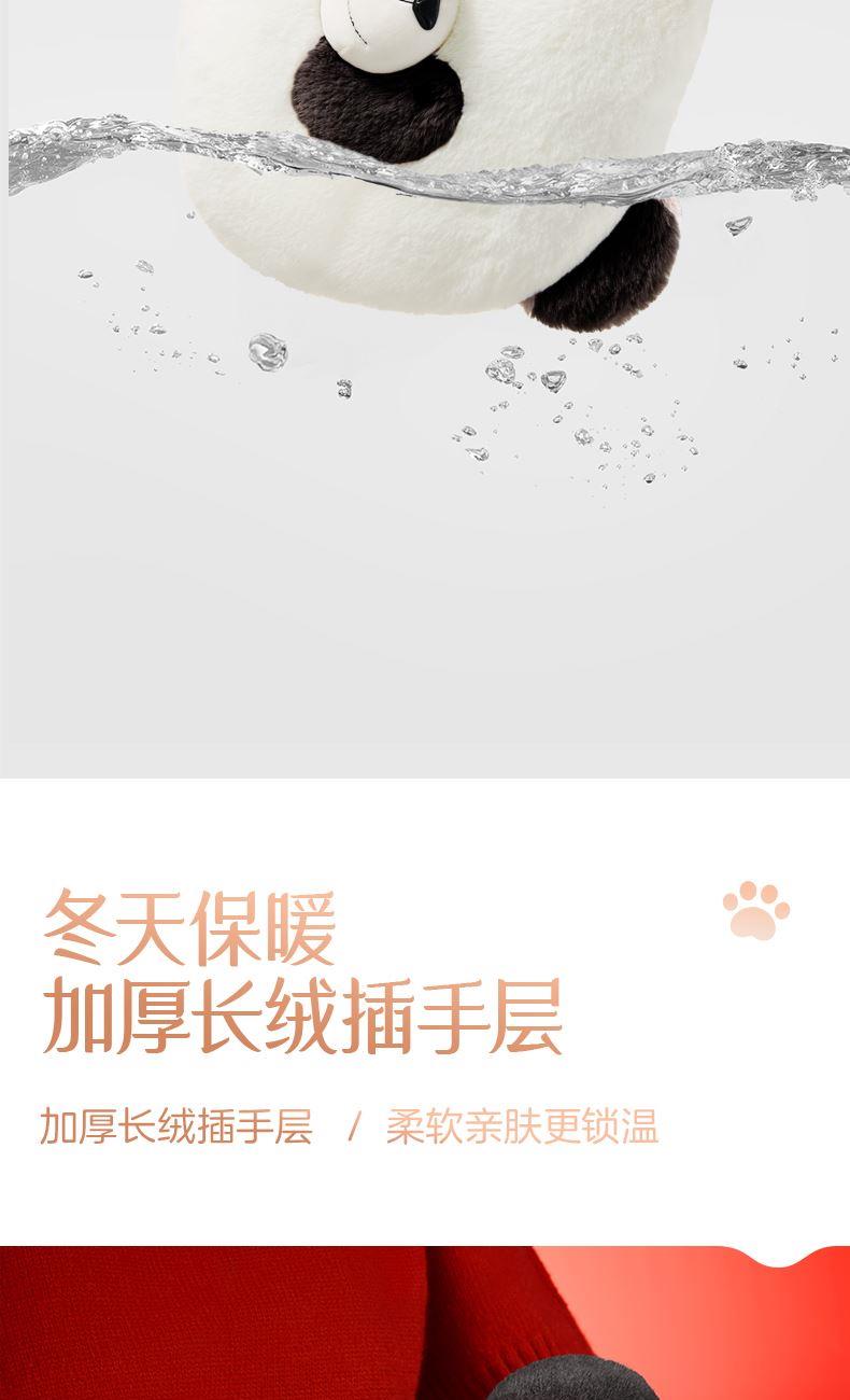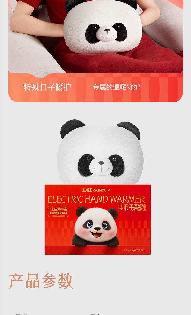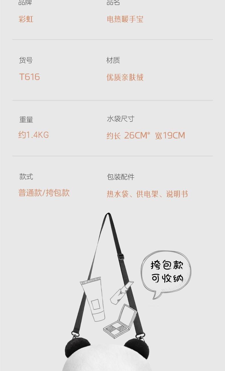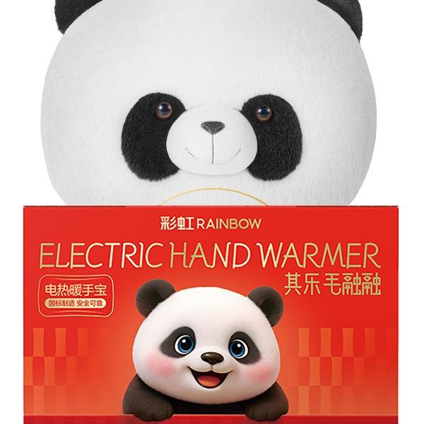 彩虹T616熊猫可拆洗加厚亲肤绒插手电热暖手宝