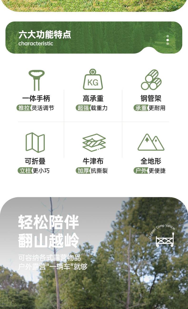 多功能性:营地车不仅可以作为运输工具,承载露营、野餐等户外活动的装备和食品,还能充当餐桌,提升露营的体验感和仪式感。