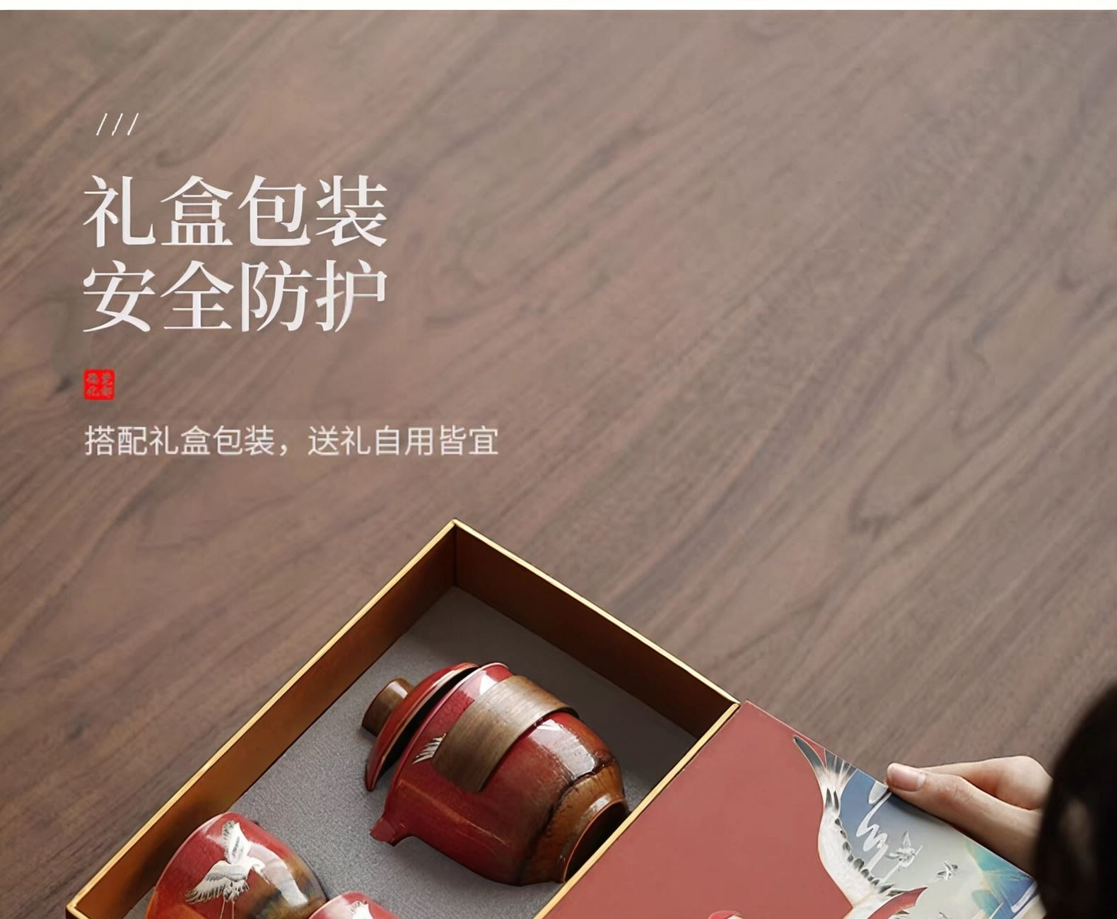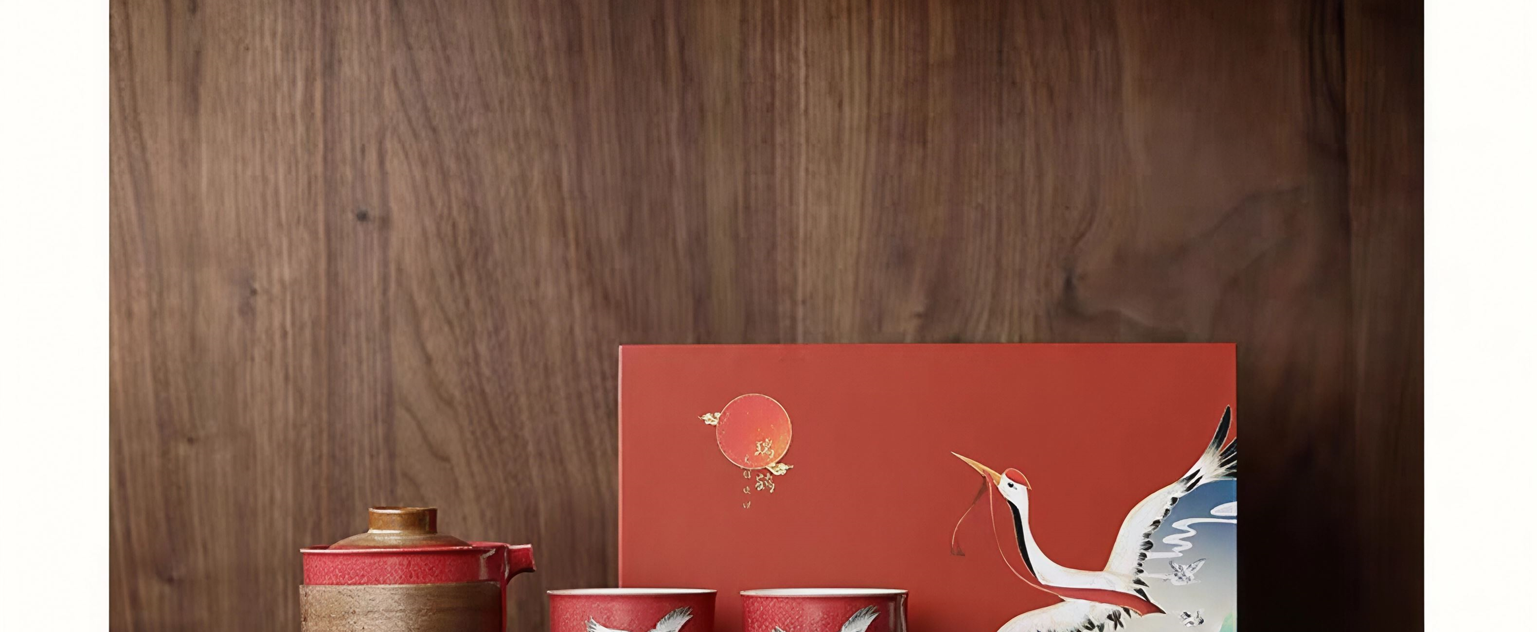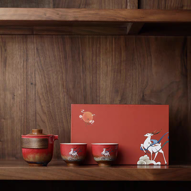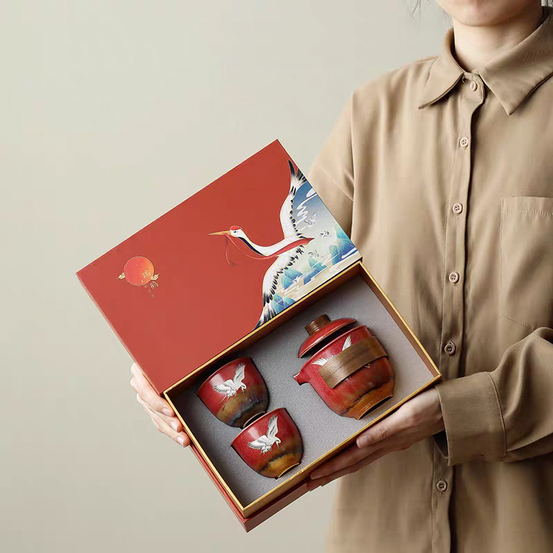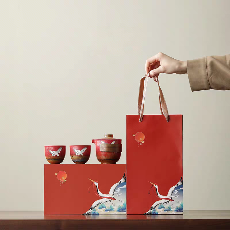 尾桥下窑故宫文创瑞鹤呈祥/敦煌九色鹿快客茶具套装开门红节礼品
