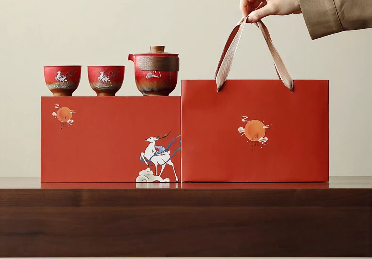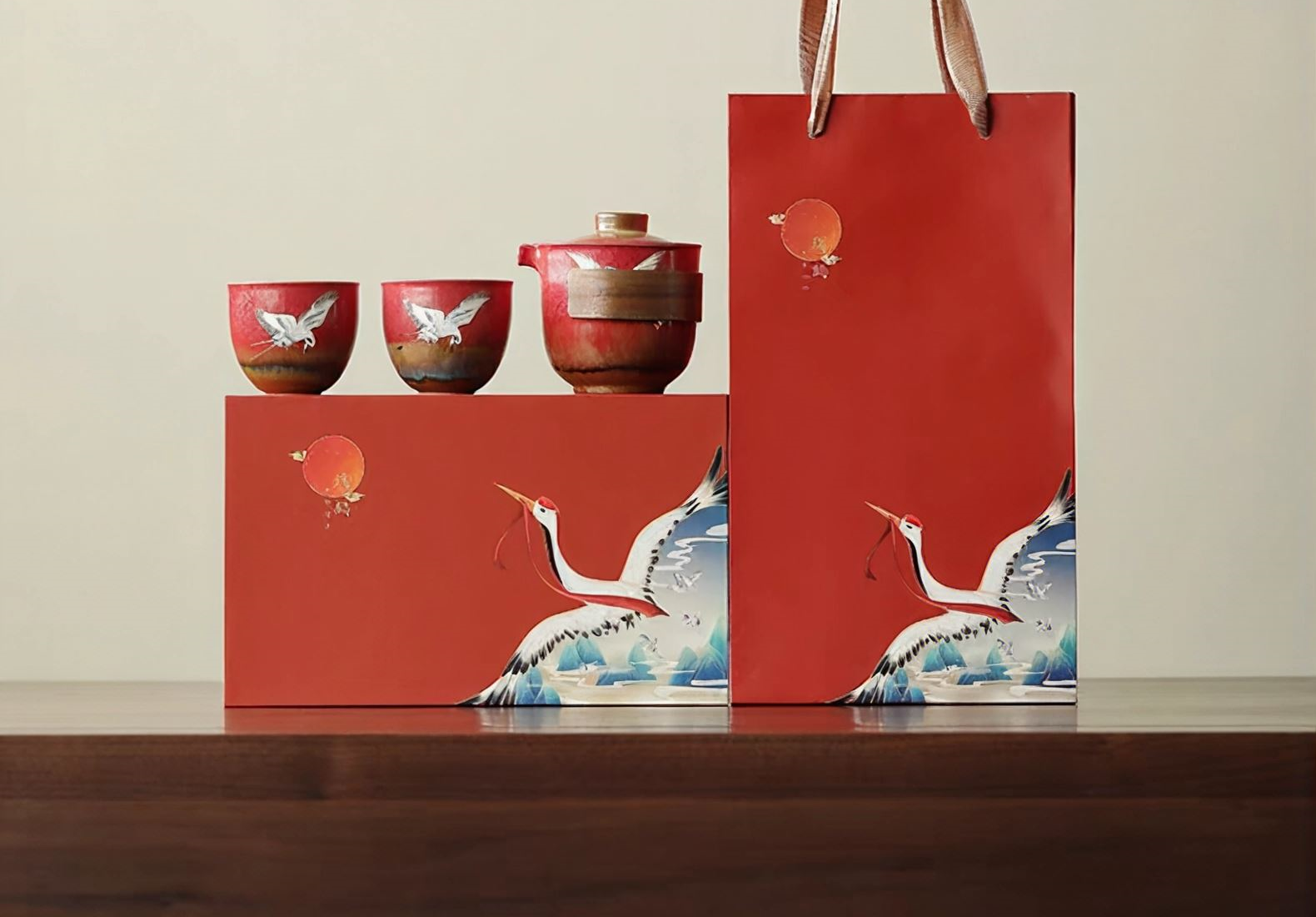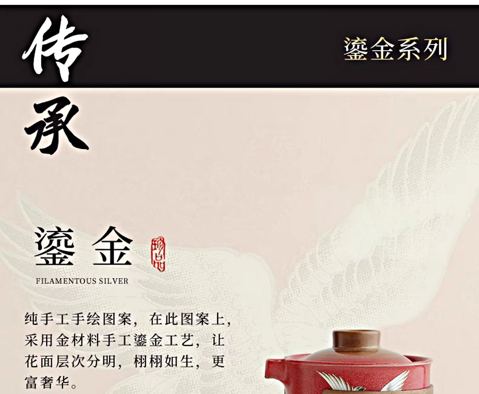 尾桥下窑故宫文创瑞鹤呈祥/敦煌九色鹿快客茶具套装开门红节礼品