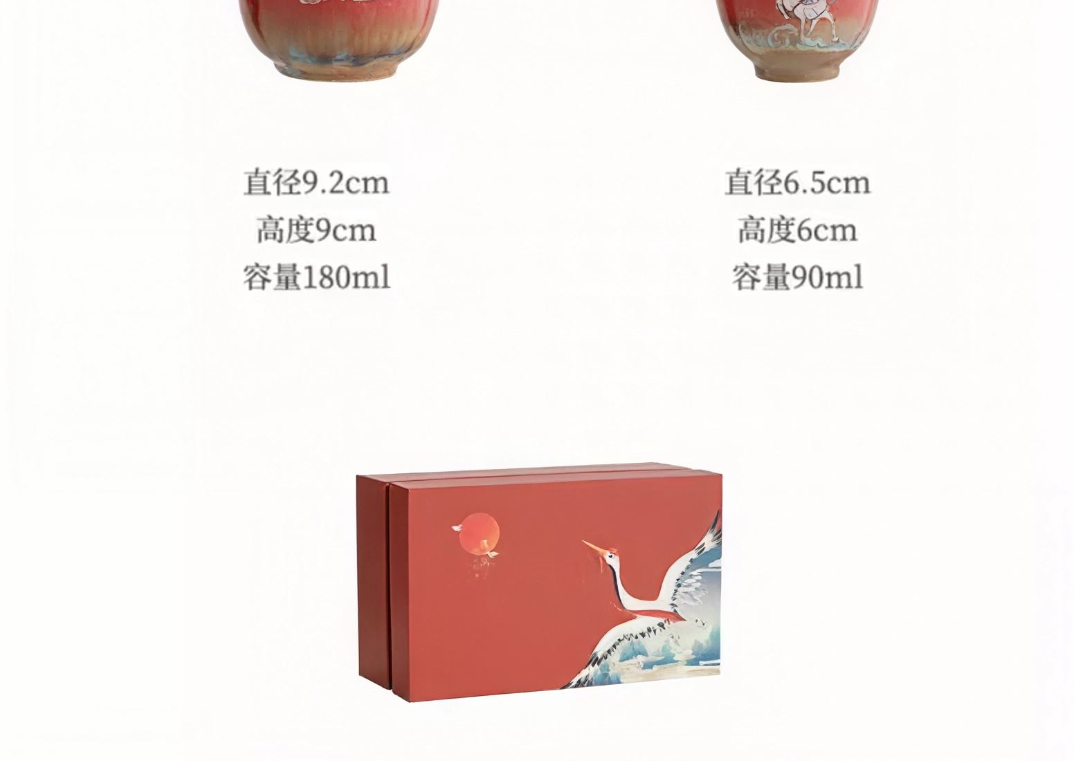 配置:手抓壶*1,茶杯*2, 尺寸:手抓壶9.2*9cm 容量180ml, 茶杯6.5*6cm 容量90ml。 款式:祥瑞(九色鹿)/瑞鹤呈祥