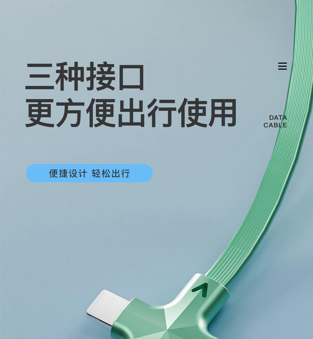 型号:XY-008 长度:1.2M 材质:TPE/ABS/铝合金 功率:66W 适用:TYPE-C/苹果/安卓 颜色:红色,蓝色,绿色,白色,黑色 产品重量:约115g 产品卖点:Type-c接口支持快充, TPE环保材质,防缠绕,耐拉伸,经久耐用,加固接头,广泛兼容,适用市面绝大多数手机。