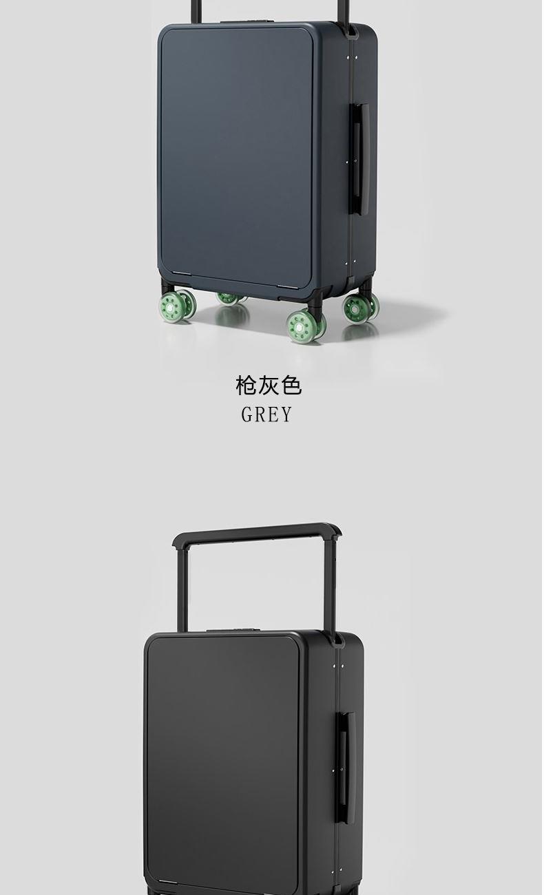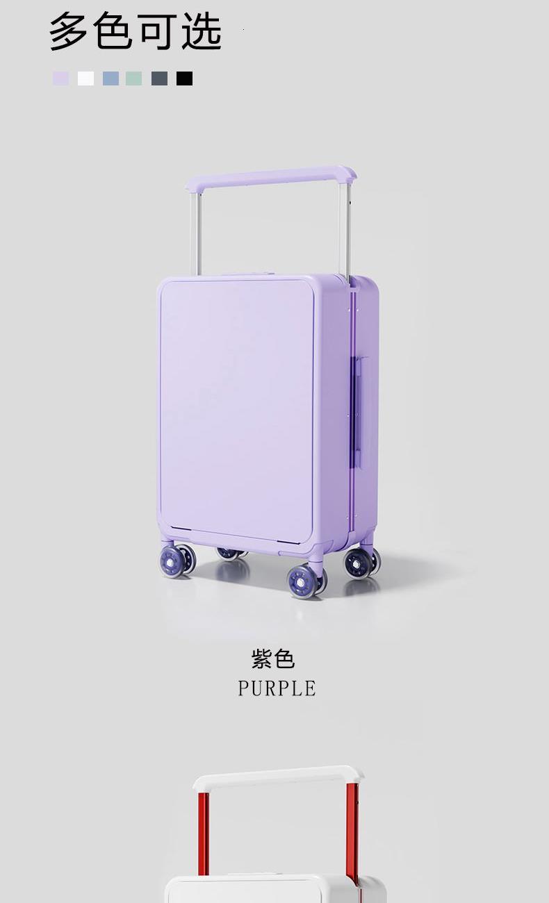 材质:聚碳酸酯(PC) 里料:涤纶 拉杆材质:全铝 尺寸:20英寸 颜色:黑色/白色//枪灰色/蓝色/紫色/绿色 货号:TM-1962 1、凝练极简精工设计,重塑视觉和审美的纯粹之境; 2、两侧贯穿式贴边拉杆,物理提升至98%扩容空间; 3、三节可伸缩铝合金宽拉杆,大幅提升行走稳固平衡; 4、大开合隐藏快捷前仓及多插袋,笔记本、证件随行随拿随放; 5、创新1:9黄金比例双层构造,隐藏式主仓储物更贴心私密; 6、果冻减震式灌注轮,静音顺滑。