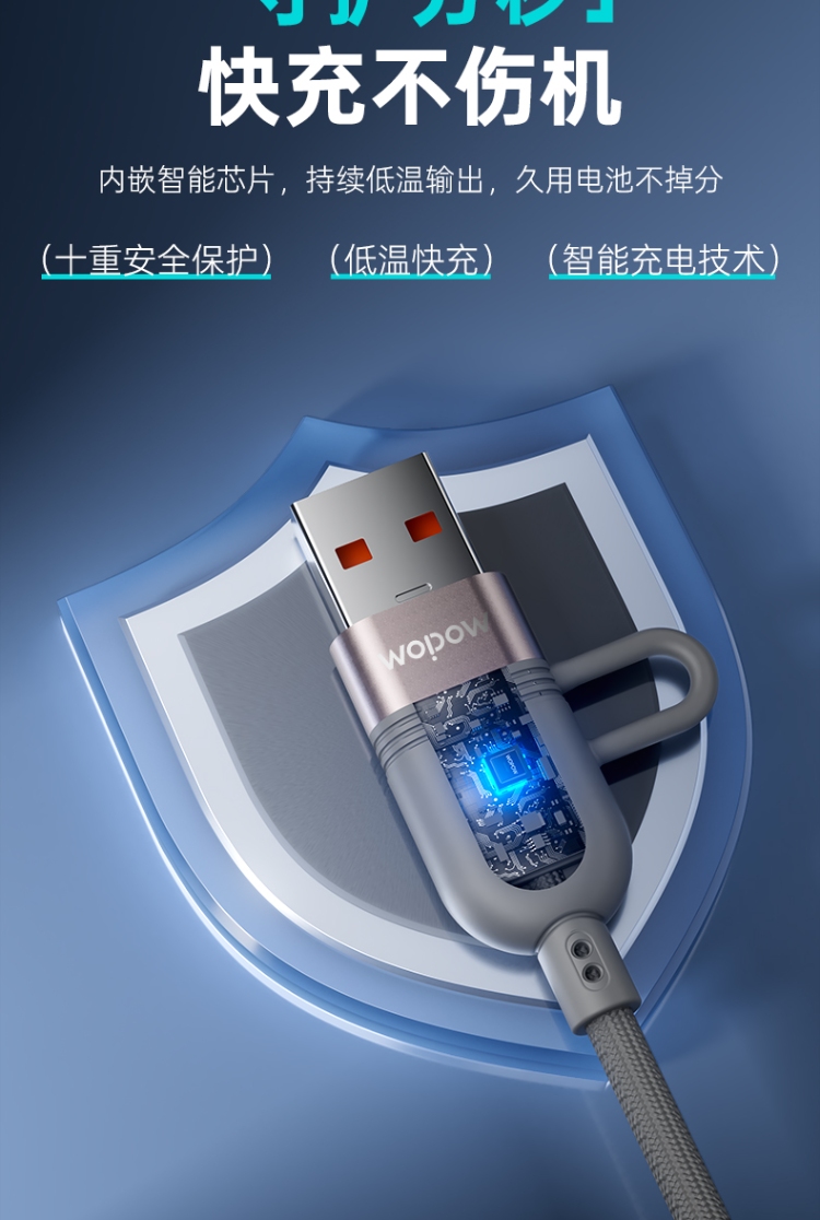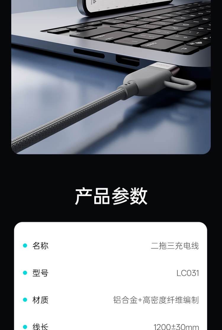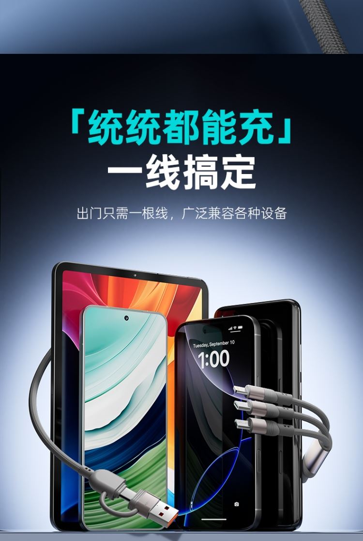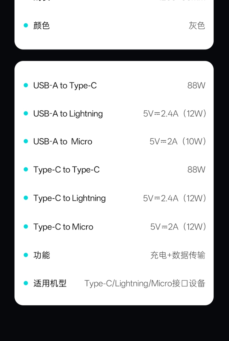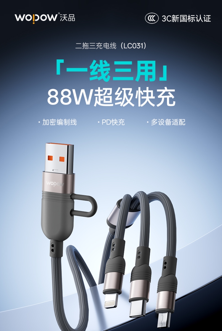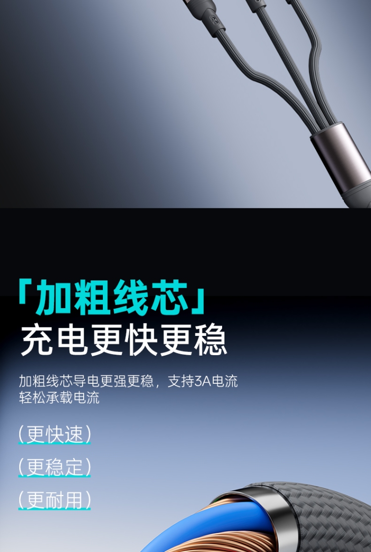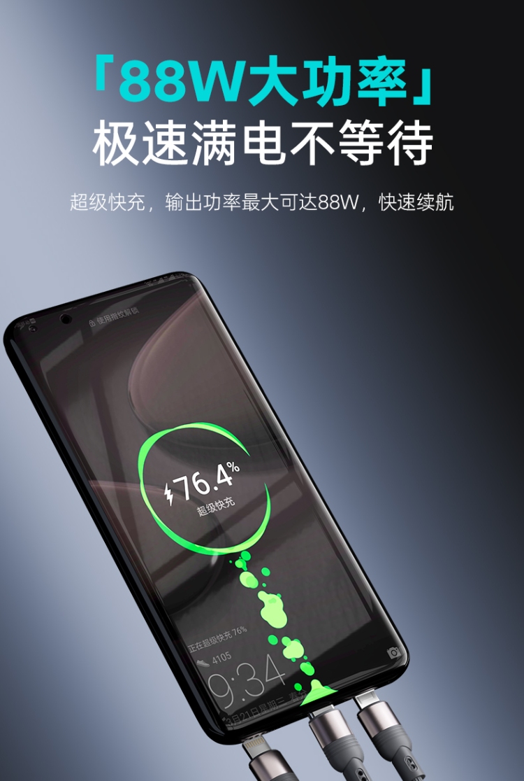 产品尺寸: 线长1.2M 包装尺寸:70*175*25mm 产品重量:50.2g 接口:苹果、安卓、TYPE_C接口的设备 适用:Apple/Micro/Type-c接口手机/平板电子设备 颜色:粉色、蓝色 材质:镀锡铜+纤维丝 绝缘外皮PE+PP料 PVC外被 红色/黑色编织 华为显88W超级快充 过3A电流 外观简约时尚 铝合金外壳 坚固耐用 加密编制