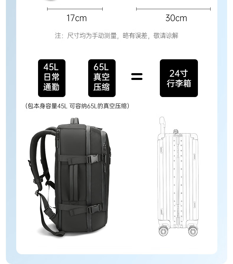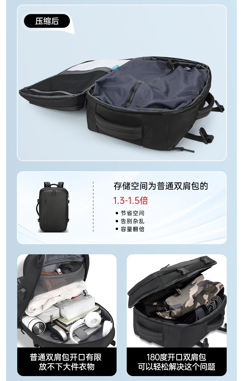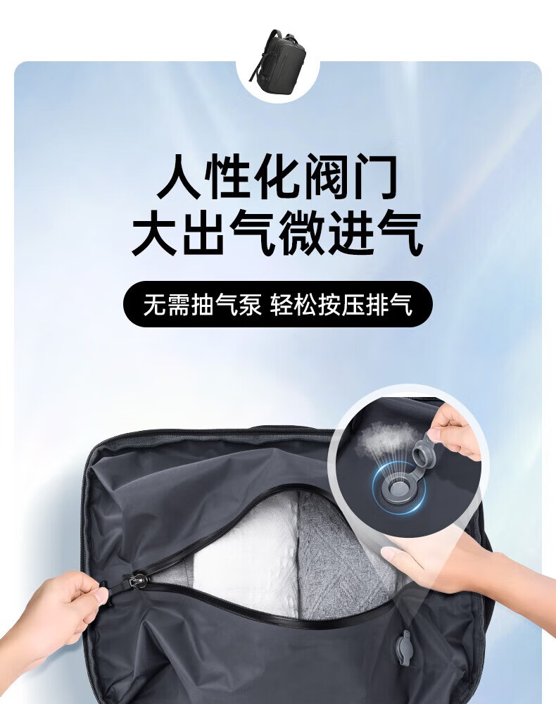 1.主仓真空压缩功能,轻松收纳行李