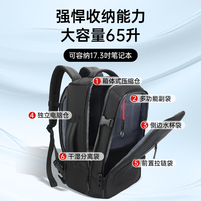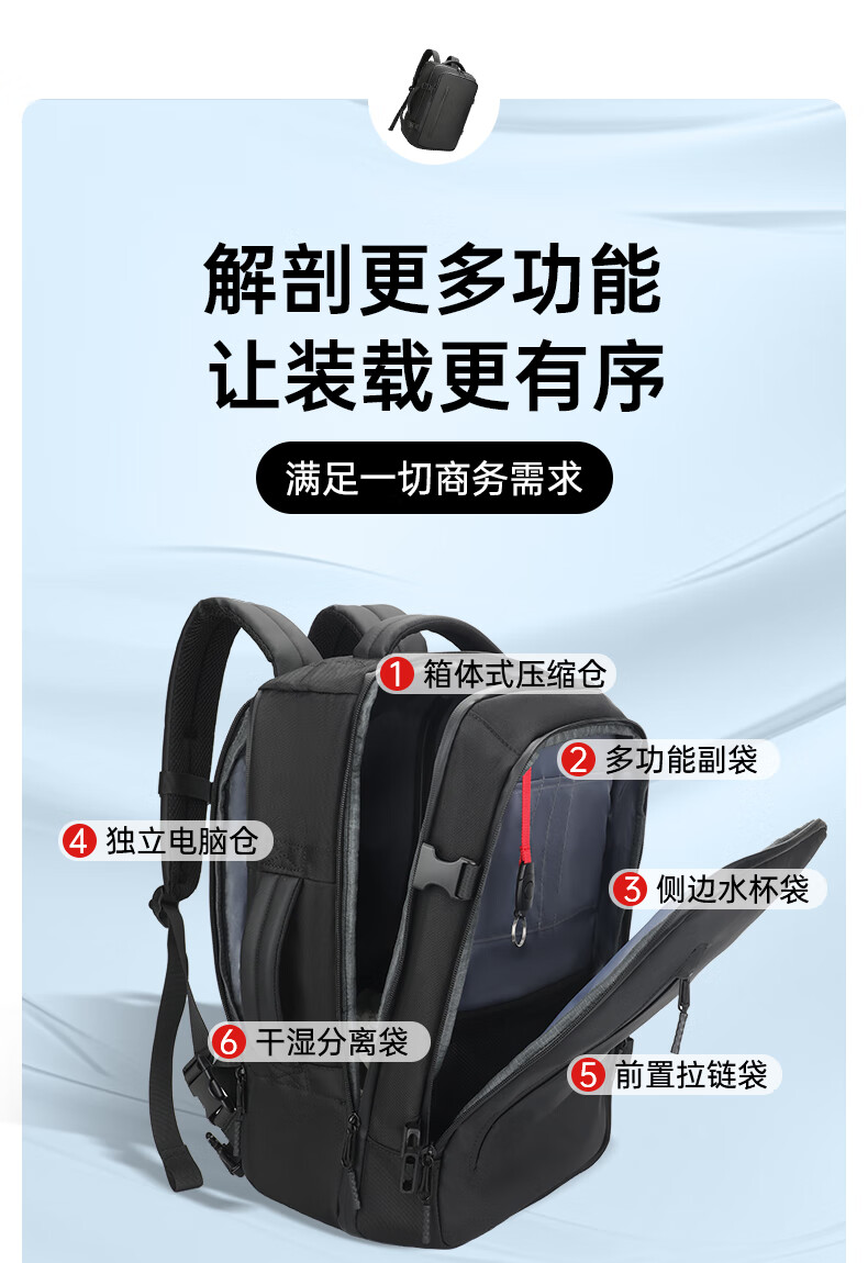 8.三层架构:独立电脑仓+大容量主仓+便携前袋