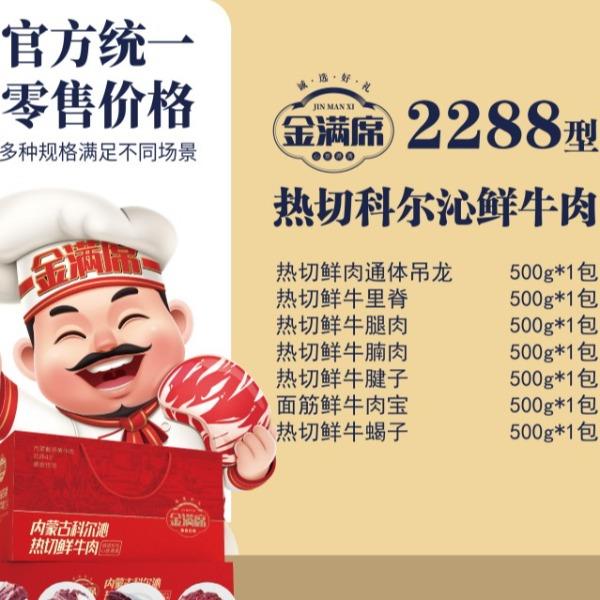 1.热切鲜肉通体吊龙500g 2.热切鲜牛里脊500g 3.热切鲜牛腿肉500g 4.热切鲜牛腩肉500g 5.热切鲜牛腱子500g 6.面筋鲜牛肉宝500g 7.热切鲜牛蝎子500g