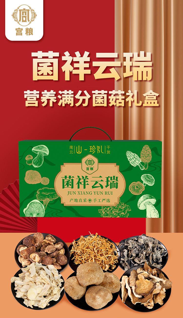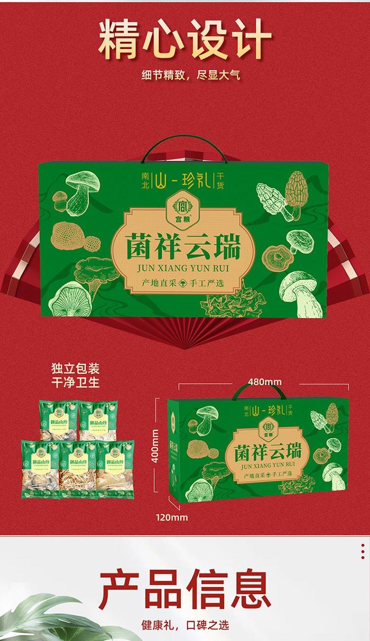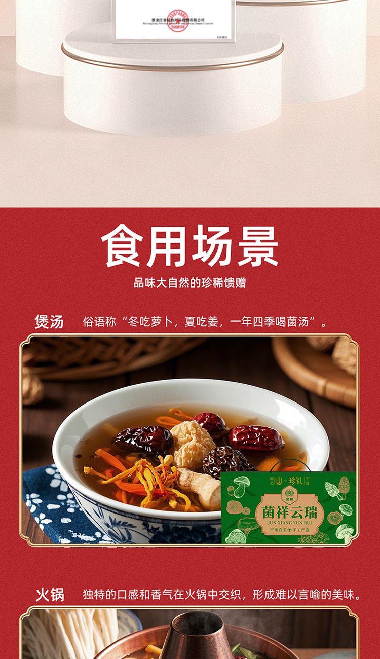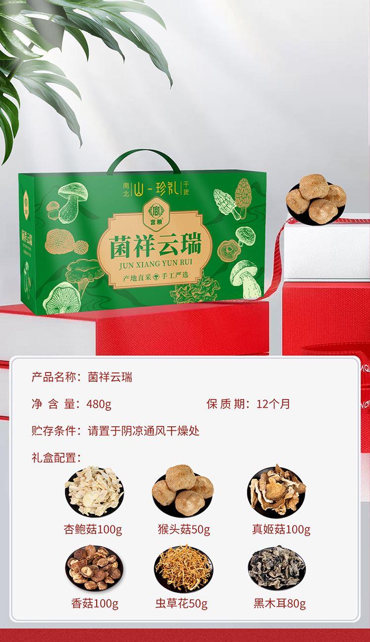 内置:香菇100g 猴头菇50g 虫草花50g 真姬菇100g 杏鲍菇100g 黑木耳80g
