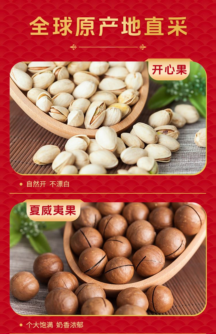 如水财源广进礼盒 净含量:1338g 如水开心果150g 如水夏威夷果160g 如水琥珀核桃仁150g 如水鱼皮花生138g 如水蟹黄味蚕豆150g 如水红糖黑芝麻酥150g 如水新疆葡萄干200g 如水原味山楂球240g