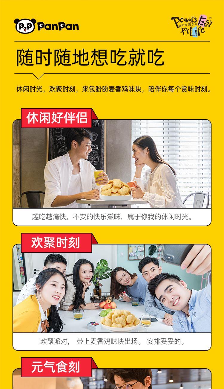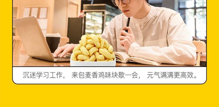规格:60g 盼盼麦香鸡味块60g,一口酥脆,满满童年回忆! 严选优质玉米粉搭配鲜香鸡肉提取物,非油炸工艺,每一口都金黄酥脆、麦香交融鸡肉鲜香,好吃不腻。 6小袋独立包装,方便携带,解馋,聚会分享、宅家追剧都适配 。