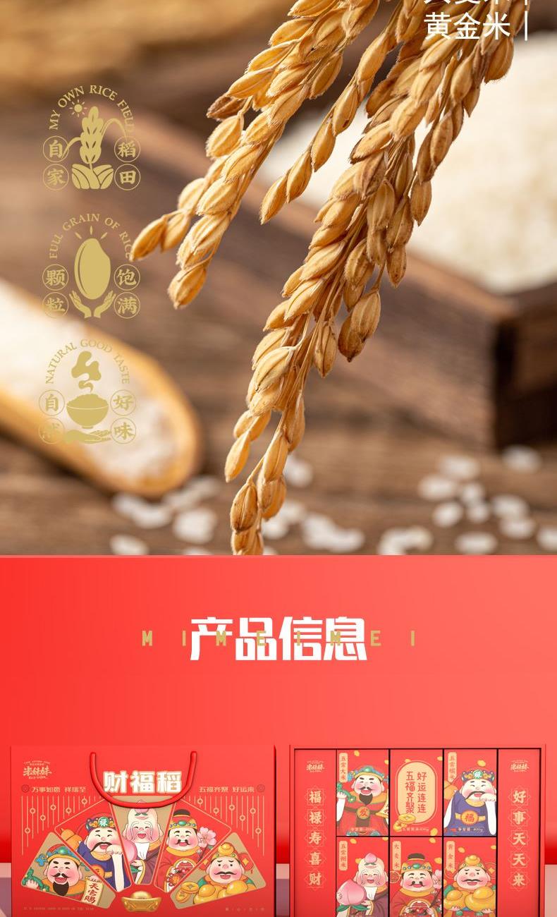 1 源自东北肥沃黑土。 2 古法耕种,人工除草除虫。 3 精美国风创意礼盒、送礼、发福利佳品。 4 真空包装,锁住新鲜,让味道更纯正。 5 财福稻,福禄寿喜财,好事天天来 。