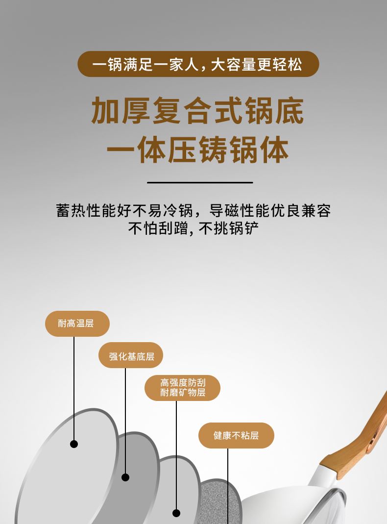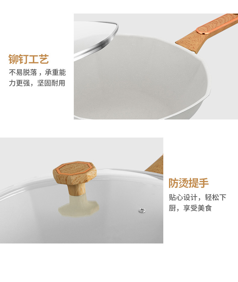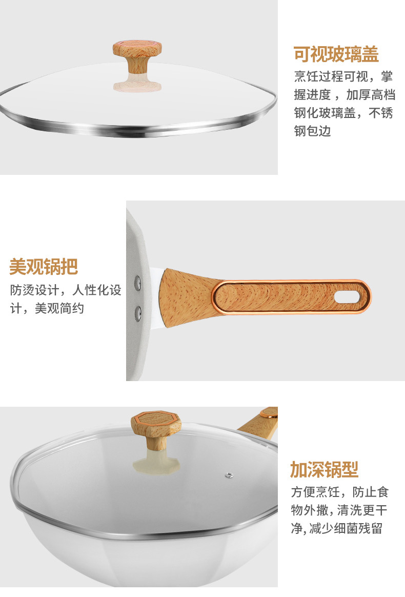 规 格:32cm炒锅 材 质:精铁+麦饭石不粘涂层 产品为精铁麦饭石高温熔喷工艺,具有不沾效果而且少油烟。炒锅32公分大口径加厚锅身防滑锅底配防烫隔热木手柄;配可视防爆浮法加厚玻璃。锅具适合所有炉具。