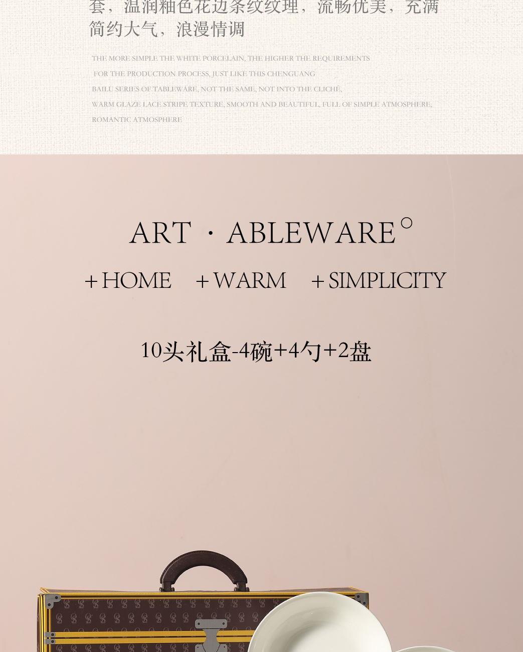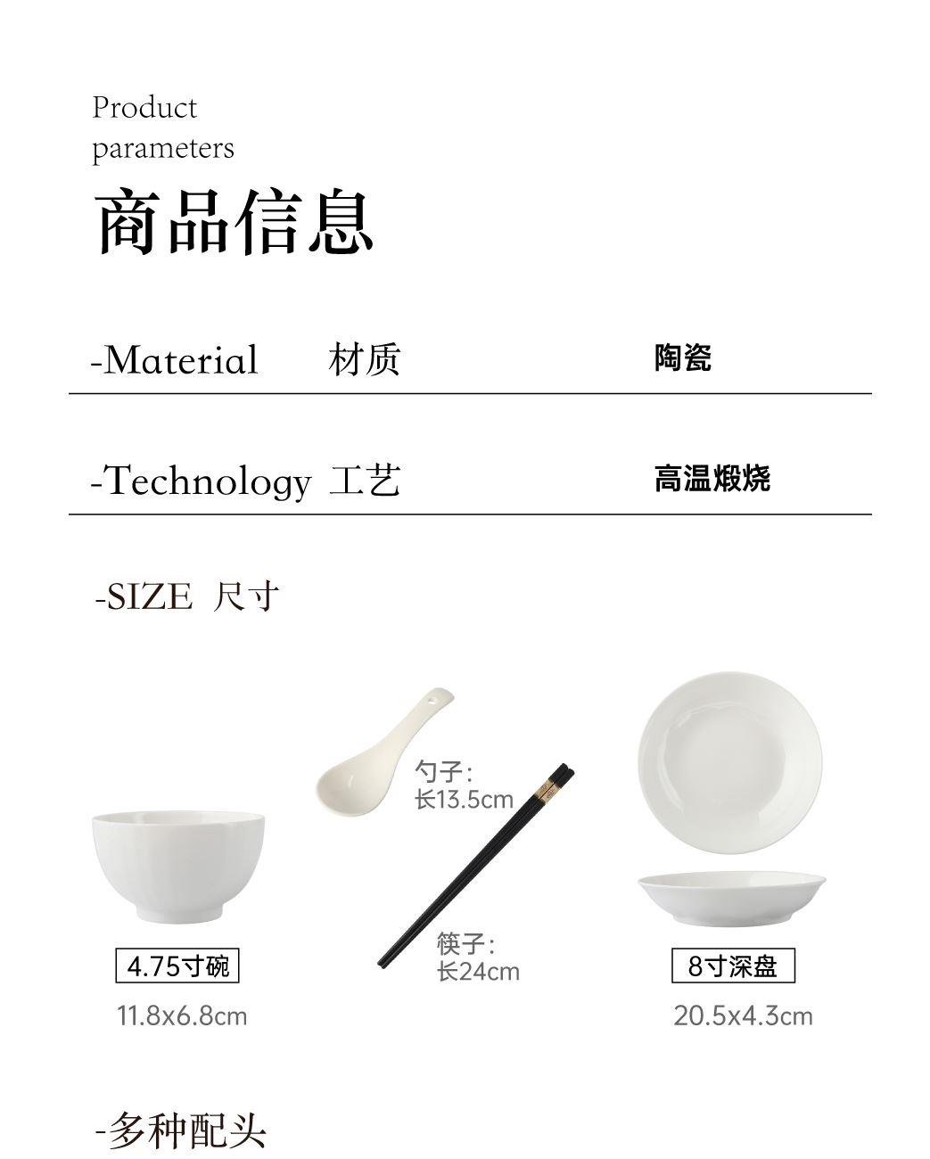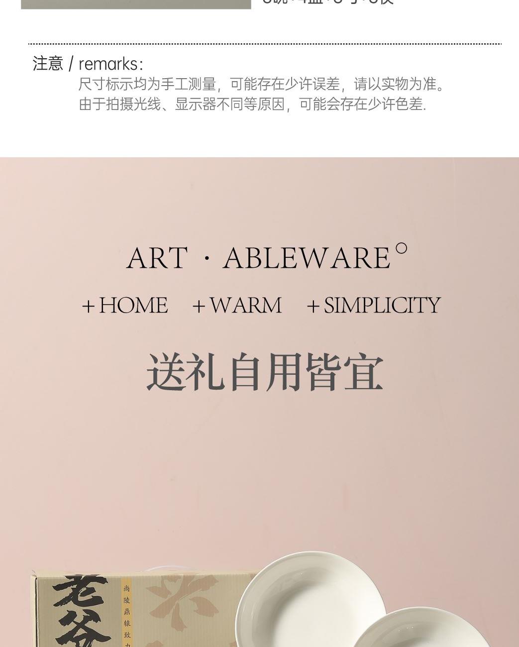 产品组成:8碗+4勺+4盘+8筷+礼盒 产品材质:高温瓷 产品工艺:烤花+素烧 产品规格:4.5寸碗,三弯小勺,8寸盘 包装尺寸:43*18.5*22cm 外箱尺寸:44.5*39*45.5cm