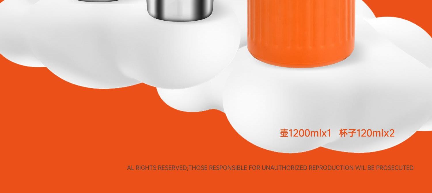 产品:壶1200mlx1, 水杯120mlx2 产品材质:塑料杯盖-食品级pp 食品级防漏水硅胶圈 材质-316不锈钢 保温效果:6-8小时 彩盒尺寸:18.2x10.2x21.6cm 外箱尺寸:56x53x45cm