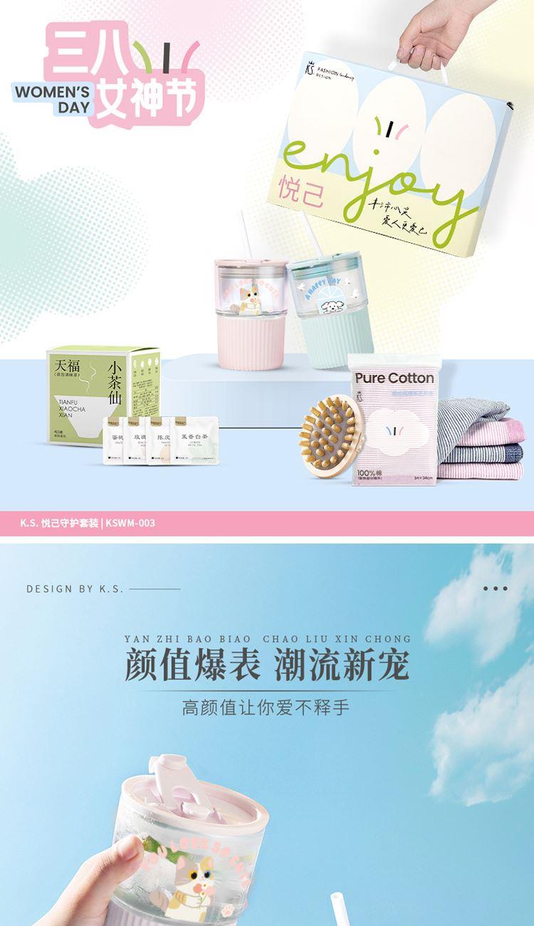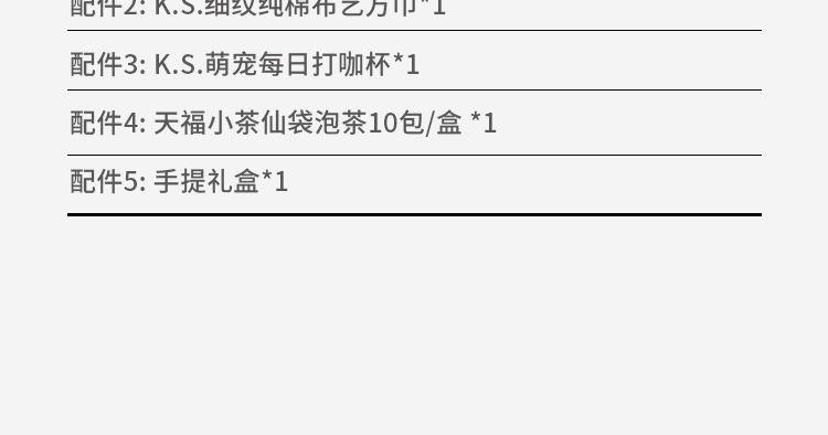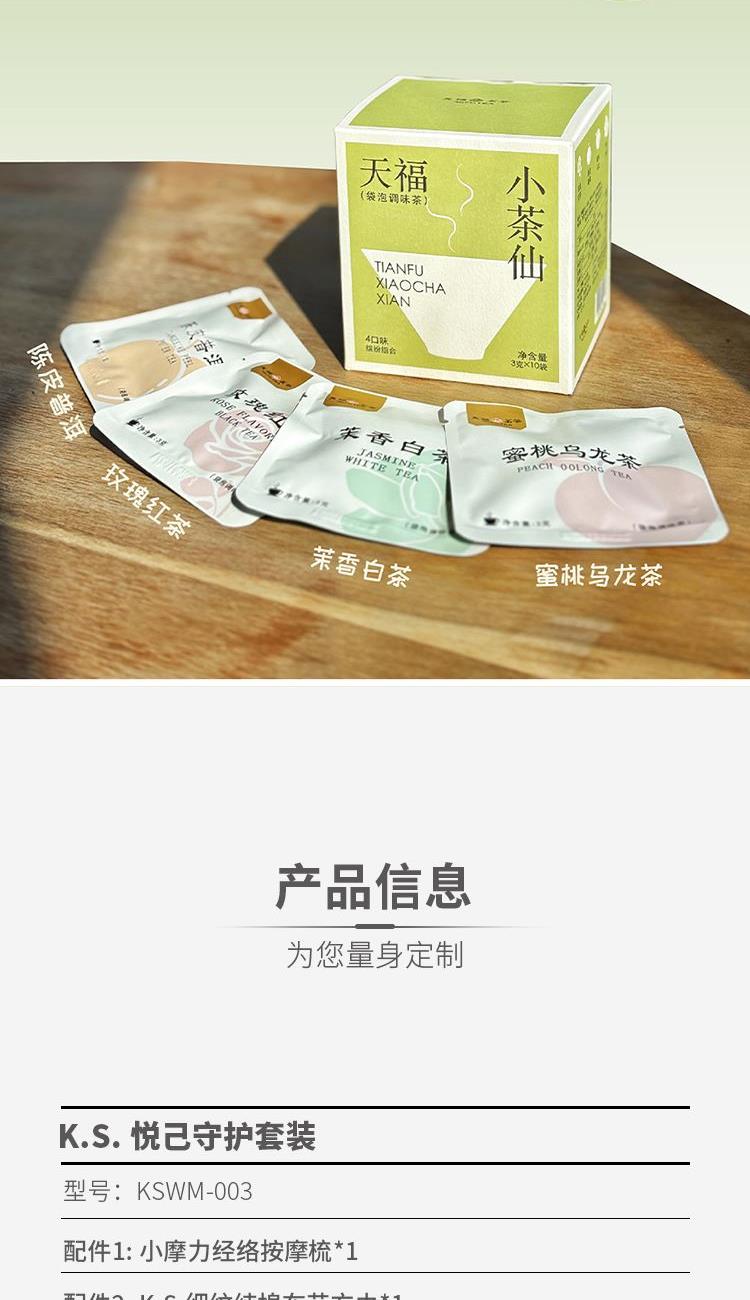 礼盒以悦己为主题,用清新明快的棉花插画造型塑造了温暖的调性。更适合员工福利、活动营销等。 礼盒包含天福小茶仙、萌宠打咖杯、经络按摩梳、条纹方巾。 礼盒、内容物件上均可实现中小批量成品订制,全套订制方案输出,为企业宣传添砖助力。 打咖杯/12.5*8.5CM 天福袋泡茶:3G*10包 按摩梳/11cmx7.3cmx4.5cm 方巾/34*34CM