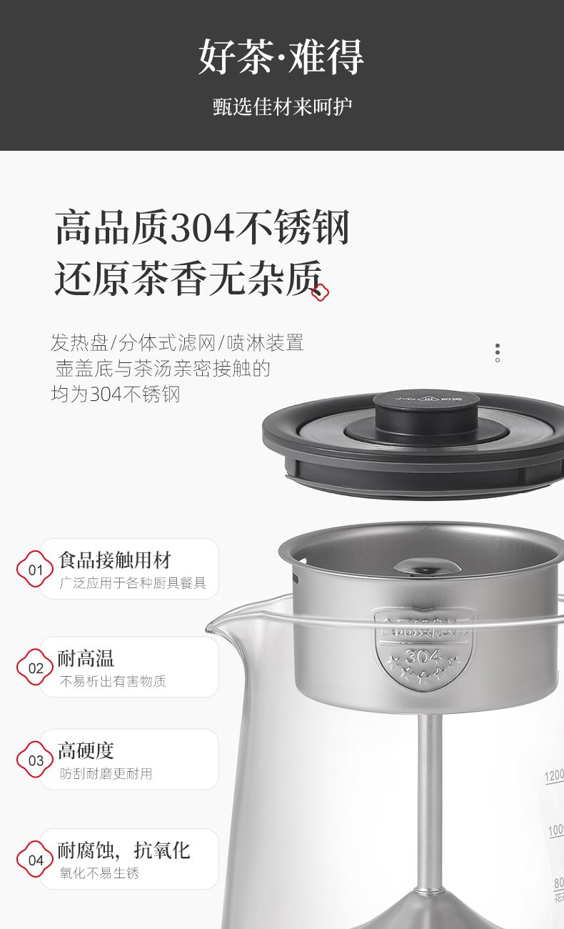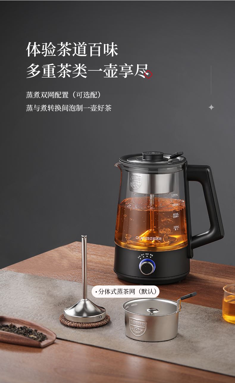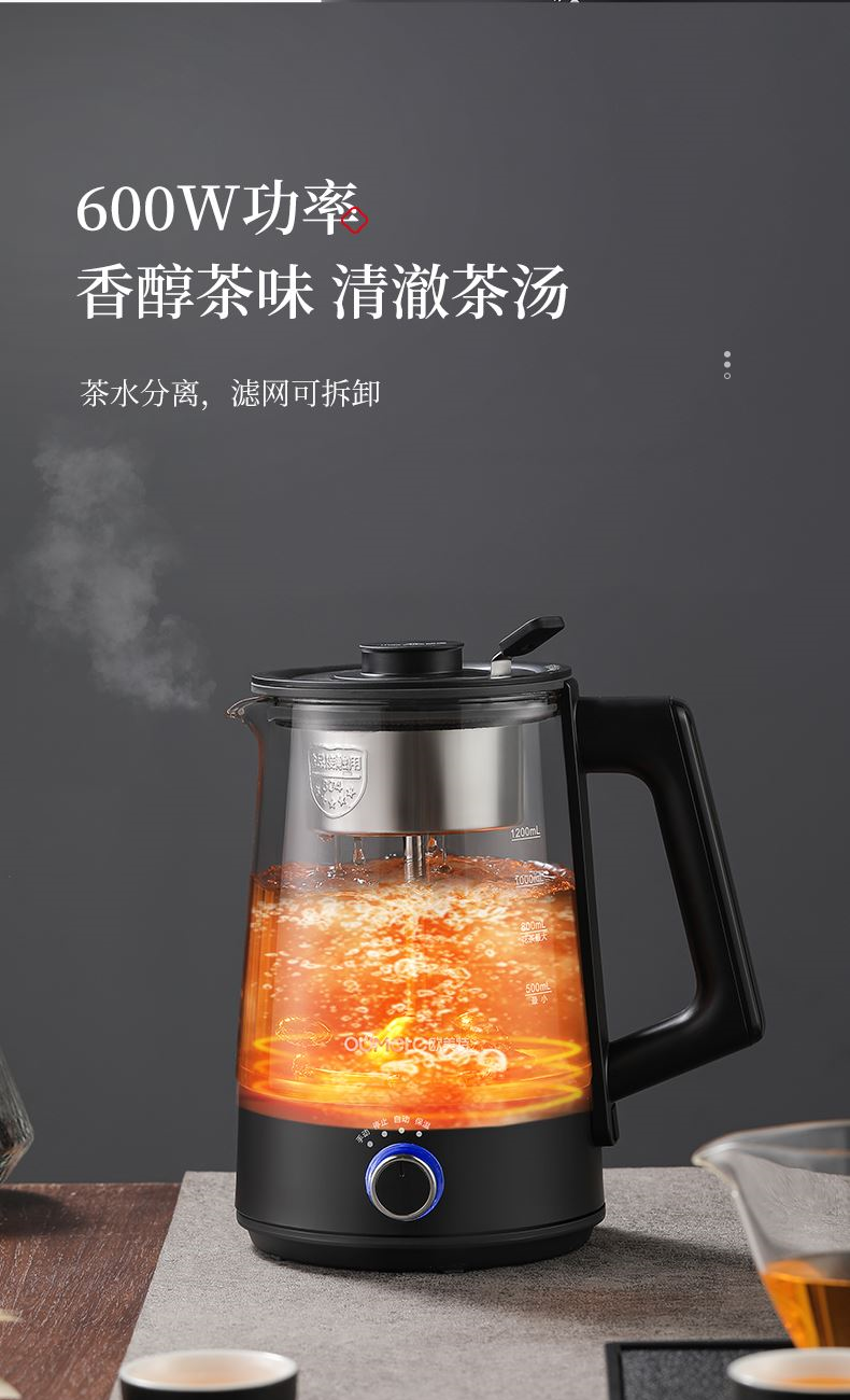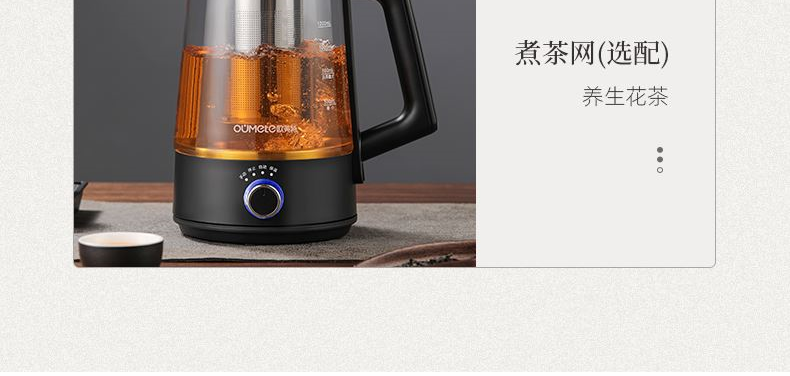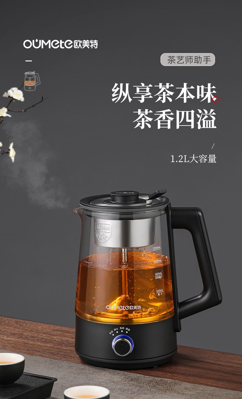 型号:OMT-PC1016A 容量:1.2L 功率:600W 功能:自动、手动、停止、保温 材质:杯体耐热玻璃,304不锈钢发热盘、过滤网、壶盖 符合群体:爱茶人士