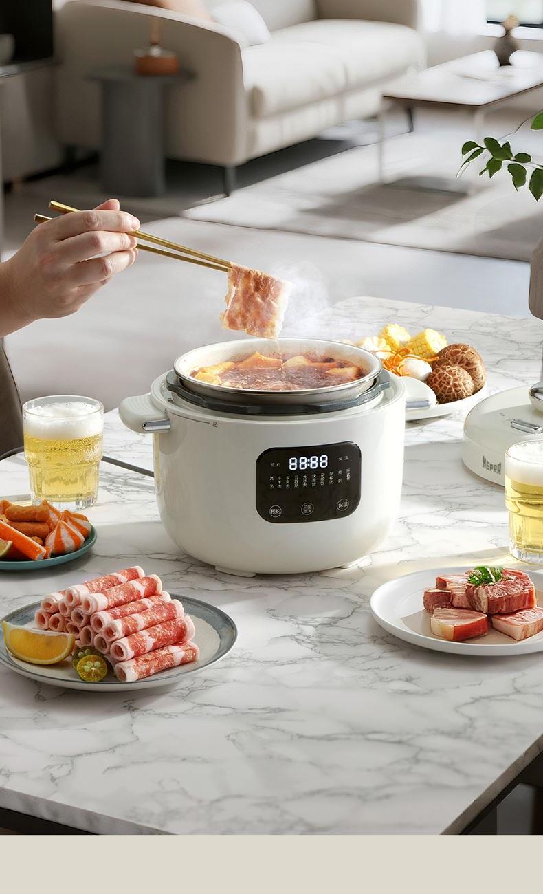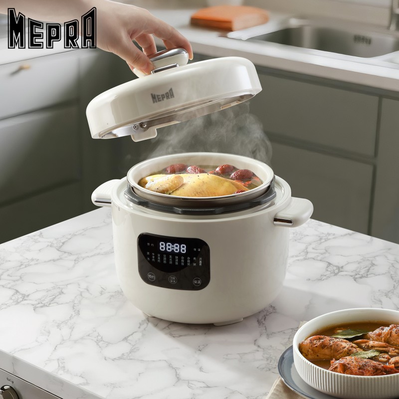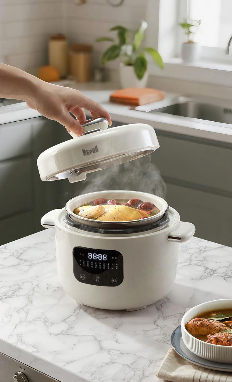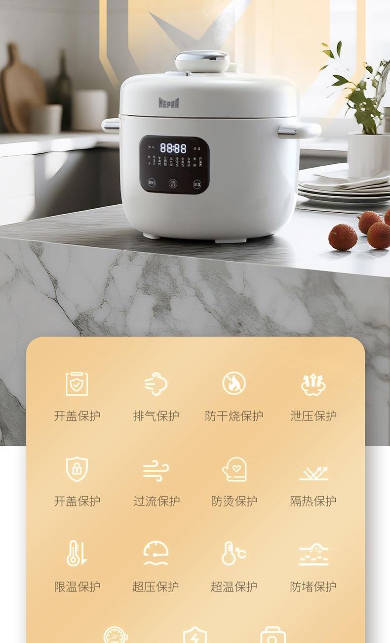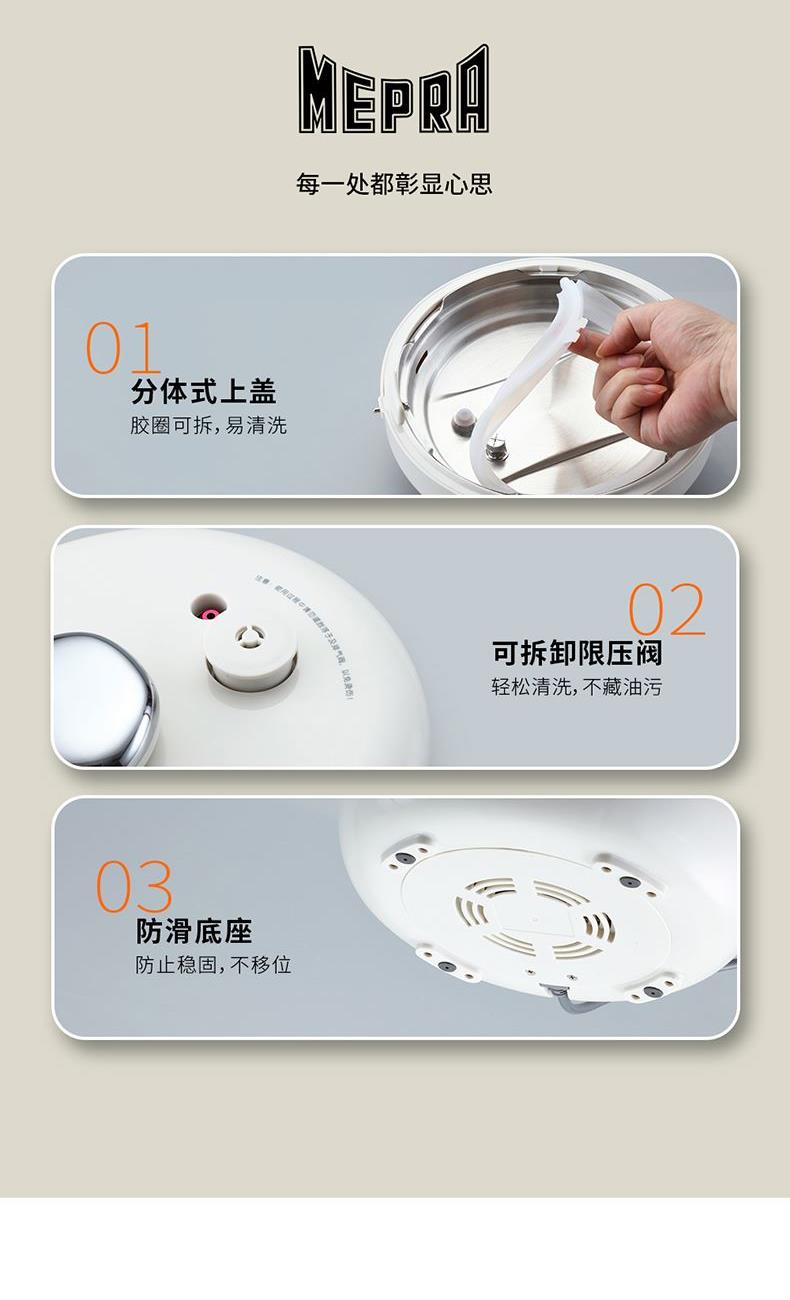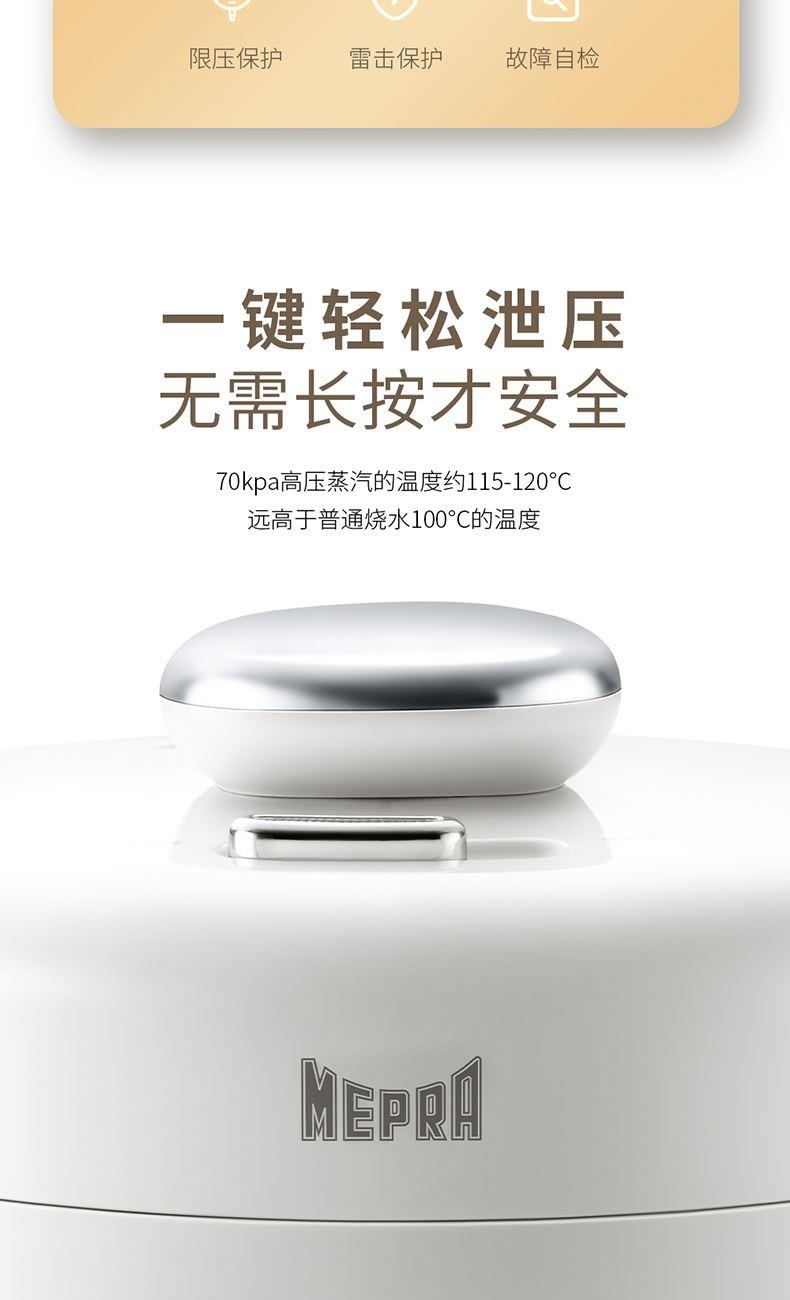 1、0氟铁釜珐琅釉压力锅,抗刮,不粘性能好; 2、铝合金发热盘,受热更均匀; 3、800W大火力&70Kpa高压鲜萃; 4、自动泄压/一键泄压,双模式泄压; 5、30000次耐磨挑战成功,钻石级9H硬度; 6、压力锅/电饭煲/电煮锅三合一,满足不同烹饪需求; 7、10大预设菜单用心做好每一餐; 8、3L精致容量,一人食/多人皆满足; 9、24小时智能预约,晚餐准时赴约。