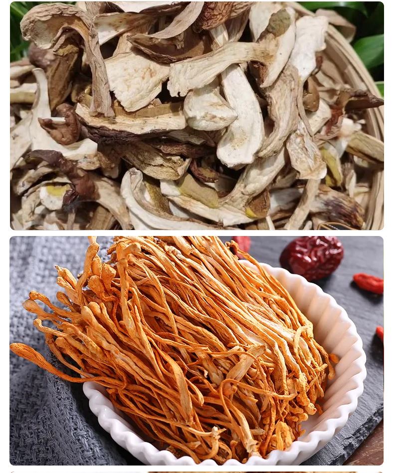 产品配置: 精选白松茸90g 野生秋木耳160g 精选牛肝菌110g 东北元蘑130g 精选蛹虫草190g 净含量:680g 礼盒尺寸:52*11.5*25cm 木盒藏珍,集野生秋木耳爽脆、蛹虫草珍有、鹿茸菇鲜香, -罐一美味,一盒尽是自然恩物,赠礼自享皆相宜。