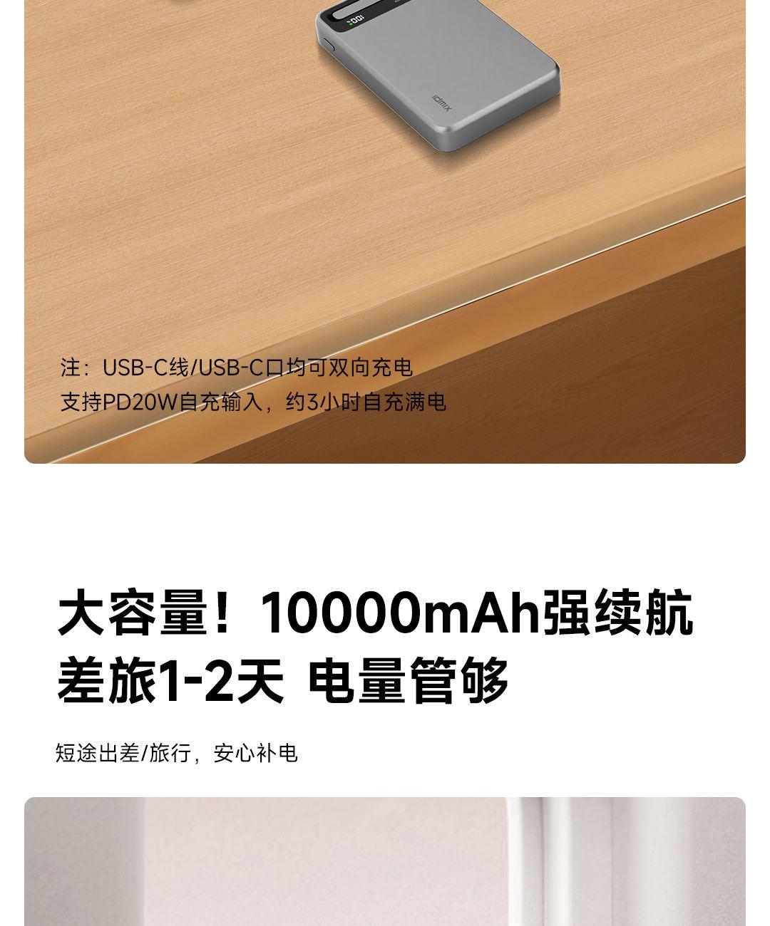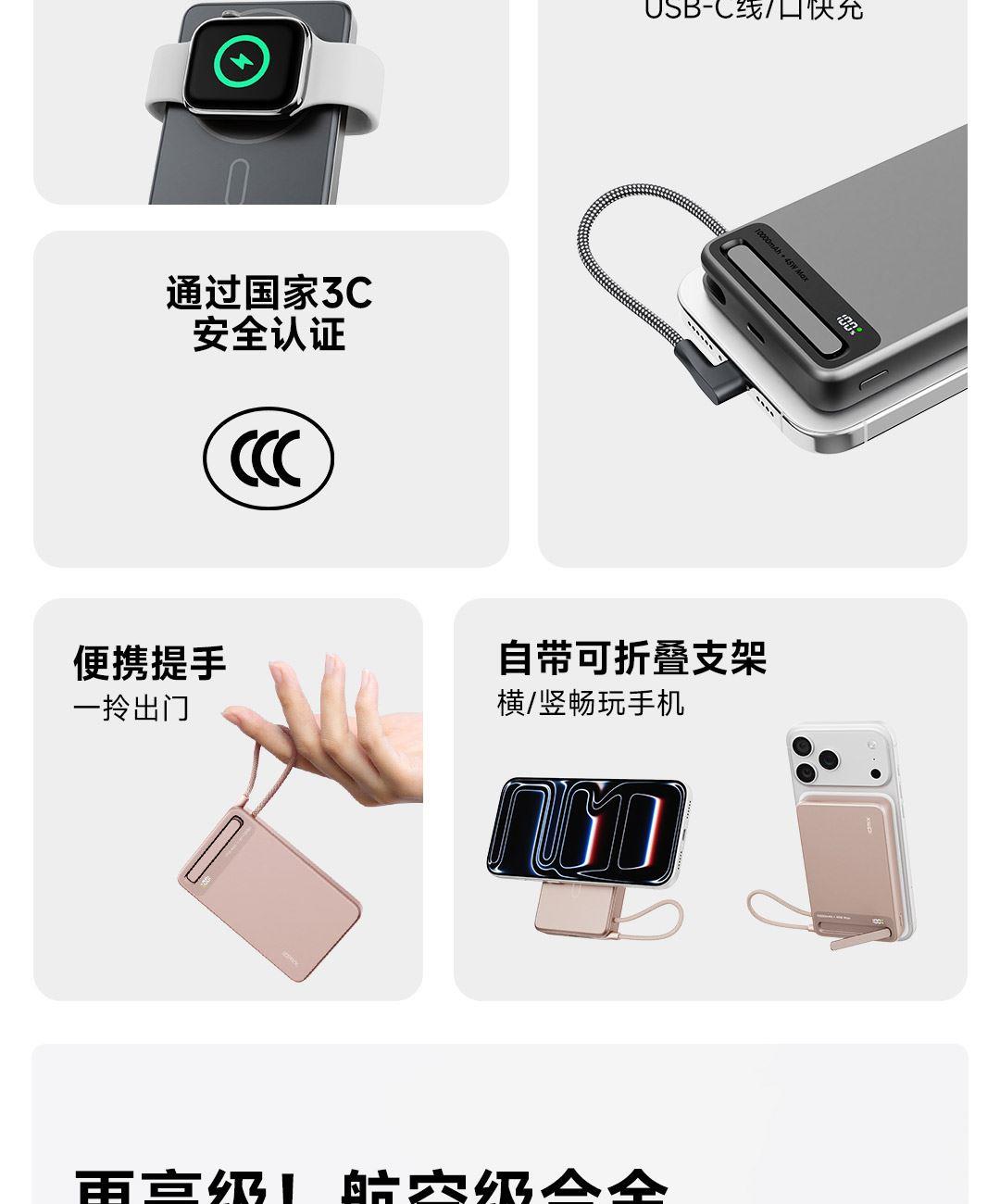 内置10000mAh Apple同材体系电芯,能量转化大幅提升,充电安全可靠
