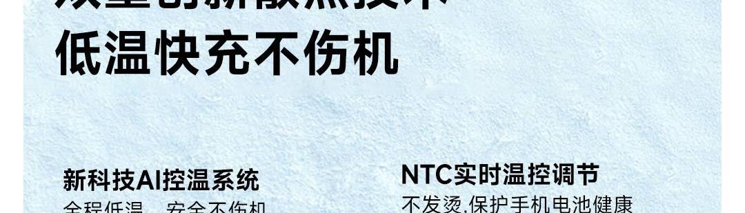 符合新国标安全认证,AI控温系统,NTC实时温控调节,双重创新散热技术,低温快充不伤机
